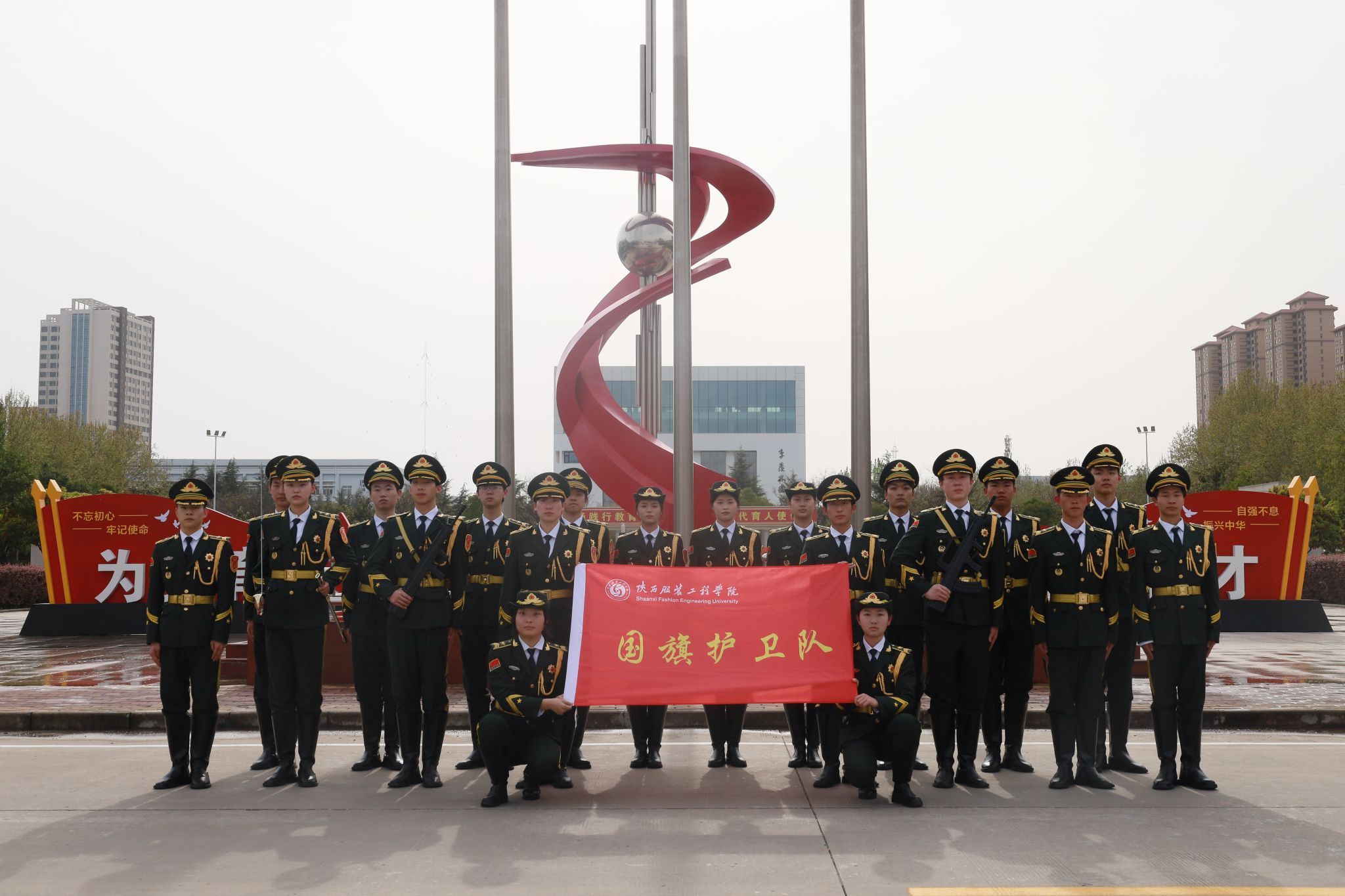 陕西服装工程学院国旗护卫队成立于2006年5月24日,国旗护卫队是一支半军事化的组织,是我校各项学生活动的一面旗帜。陕西服装工程学院国旗护卫队主要担任国旗仪仗、活动礼兵、国防教育、维稳执勤、应急响应。必须以严格的标准要求自己,增强自我管理能力,养成良好行为习惯,提高文明素质,成为有理想、有道德、有文化、有纪律的合格队员。