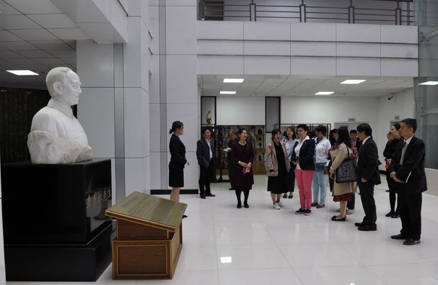 9:30时至10:30时,在学校领导陪同下,克里斯汀一行访问参观了学校的教育、教学、设计、实训、实验项目及校园环境。他们先后参观了季羡林国学院及季羡林大师的事迹、经历及成就展览。法国客人及陪同者对大师的博学敬业和严谨风范肃然起敬。在实验实训楼中,法国客人浏览了书法剪纸、茶道茶艺、黑陶雕塑、服装设计、服装工艺、服装展览、电脑绣花、手工裁剪、3D打印、人工智能及文化创新等多个项目工艺。法国客人面对琳琅满目、巧夺天工的作品很是惊奇,不停地竖起大拇指说“OK,OK”。她们对中国传统的工艺和制作手法从心底里佩服。法国客人通过参观实物、聆听讲解和与学生的交流,了解到我校的办学实力、教学水平、文化底蕴和国际影响。