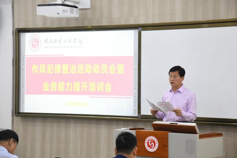 常务副校长李望国教授对开展作风纪律专项整治暨业务能力提升培训活动进行了安排部署。他指出了开展这次活动的指导思想、目标任务、整顿重点、活动安排和工作要求。他要求各部门要提前规划提早部署,布好局、开好头、落实好责任;服好务,要体现出服务意识、服务态度、服务质量;要做好安全稳定的大排查,消除隐患;各单位各部门每个人都要将评估的“二十字”方针贯穿于工作的方方面面。新学期要有新面貌新风尚新作为。