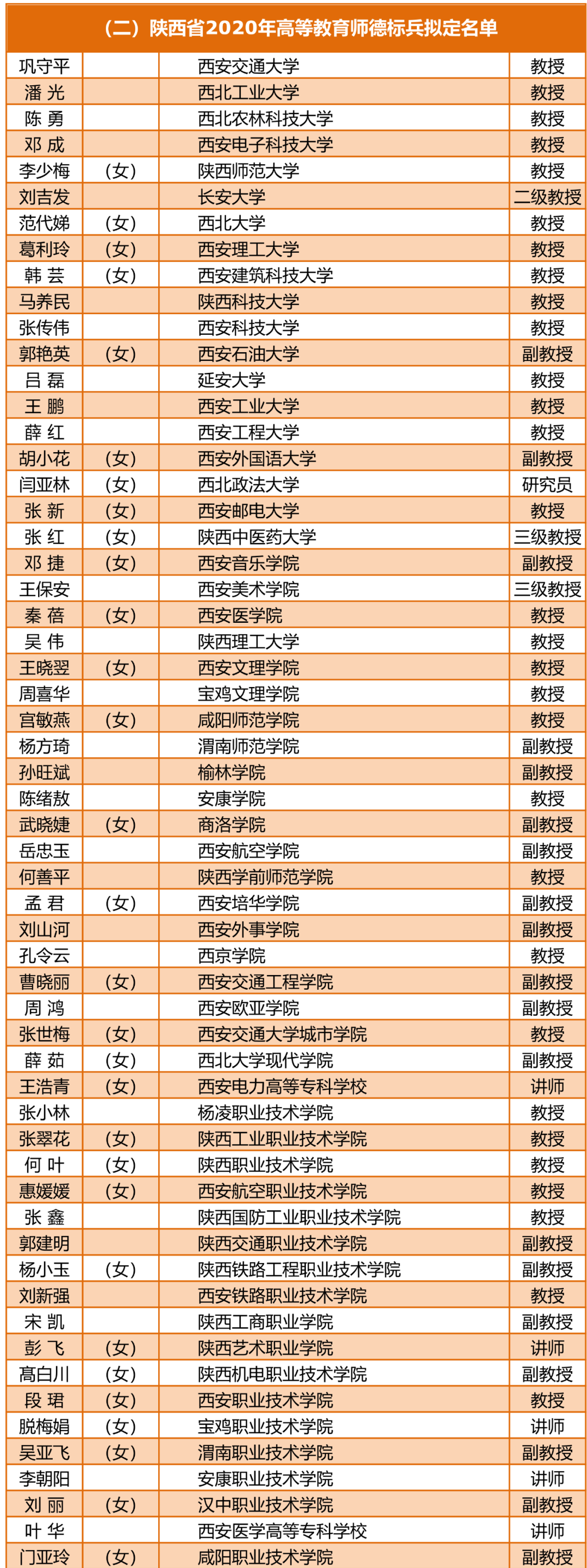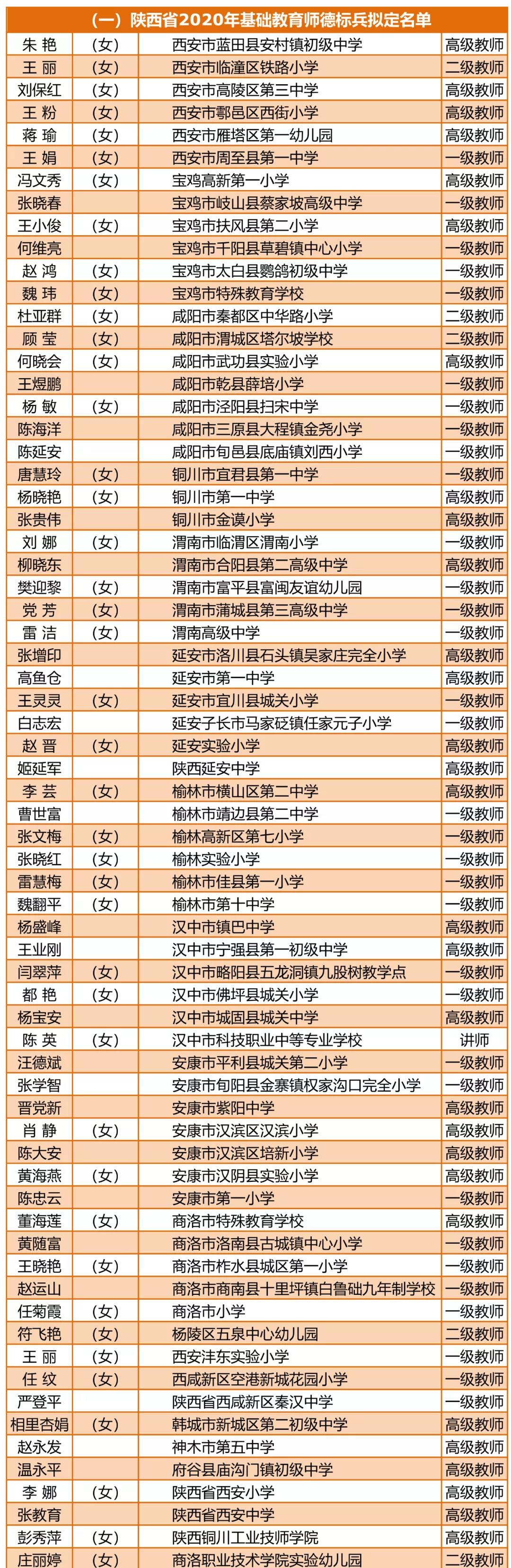 根据陕西省教育厅、陕西省教科文卫体工会委员会《关于遴选师德标兵和师德建设示范团队的通知》(陕教〔2020〕97号)精神,经各级教育行政部门、教育工会组织和各高校推荐,组织专家评审,拟命名朱艳、巩守平等126名同志为“陕西省2020年师德标兵”;西安庆安高级中学、西安交通大学电气工程学院等84个单位为“陕西省2020年师德建设示范团队”。详细名单见: