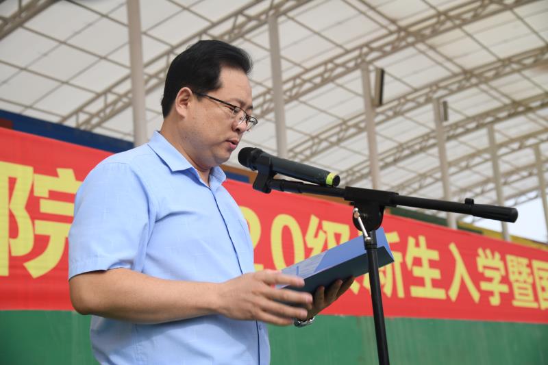 副校长李宗领教授作军训动员讲话。他代表校委会、党委会、全体师生,向2020级新同学表示热烈的祝贺!向承担这次军训任务的教官和老师们表示由衷的感谢!