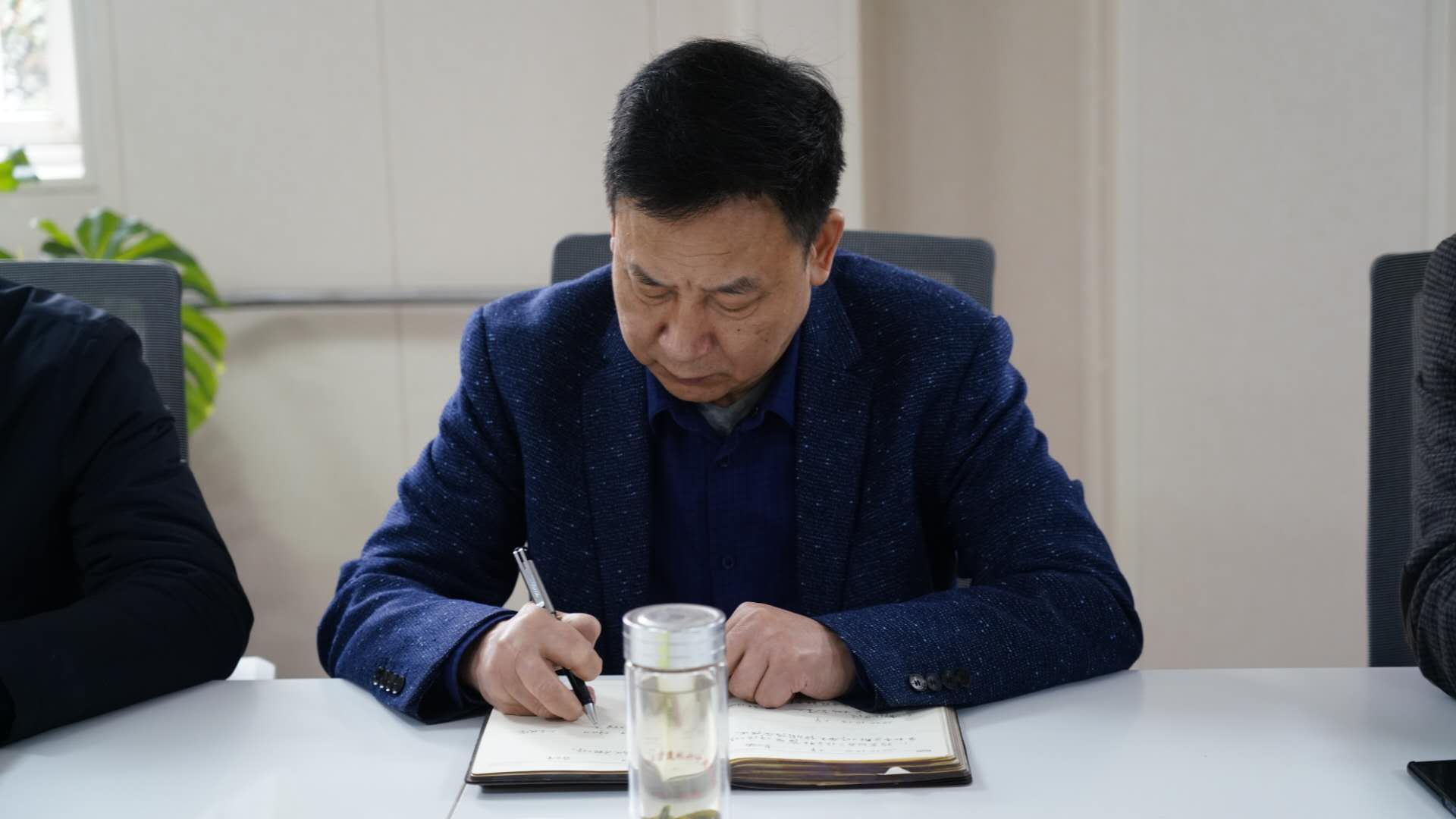 温书记带领大家继续学习中办、国办《关于深化新时代学校思想政治课改革创新的若干意见》文件。文件指出:为深入贯彻落实习近平新时代中国特色社会主义思想和党的十九大精神,贯彻落实习近平总书记关于教育的重要论述,特别是在学校思想政治理论课教师座谈会上的重要讲话精神,全面贯彻党的教育方针,解决好培养什么人、怎样培养人、为谁培养人这个根本问题,坚持不懈用习近平新时代中国特色社会主义思想铸魂育人,现就深化新时代学校思想政治理论课(以下简称思政课)改革创新提出如下意见。