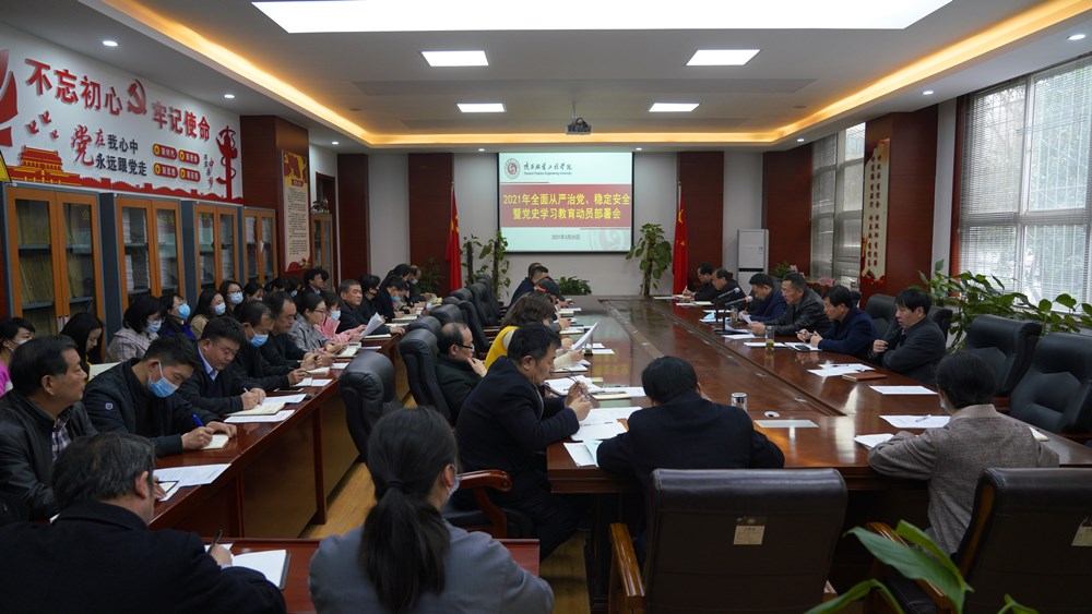 陕服新闻网讯(李文斌 杨虹)3月25日下午,我校2021年全面从严治党、稳定安全暨党史学习教育动员部署会议在G102会议室召开。校党政领导班子成员、校纪委委员、各处(室)、直属单位负责人,二级院长(主持工作副院长),各党总支、直属党支部书记参加会议。会议由校长张义明教授主持。