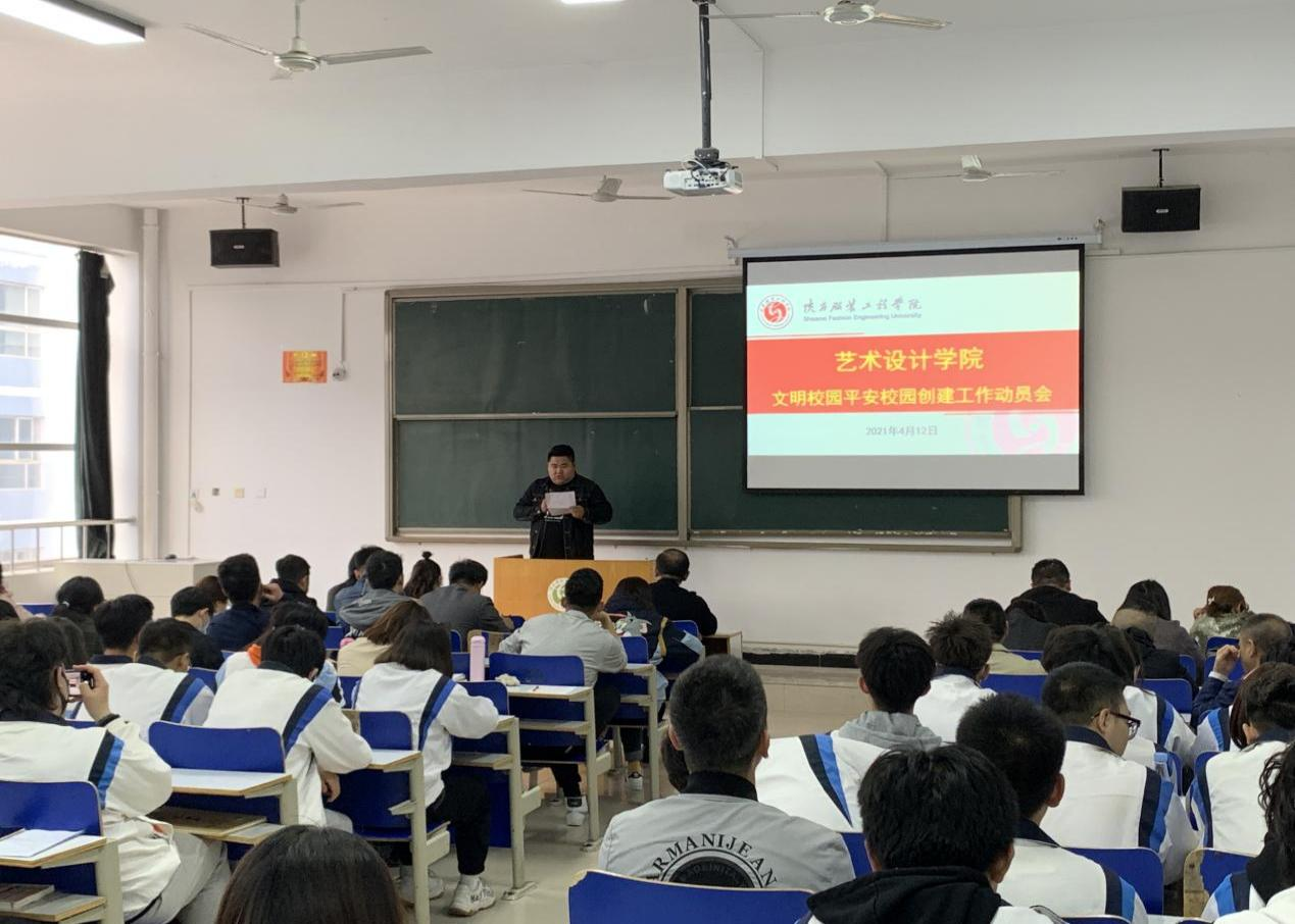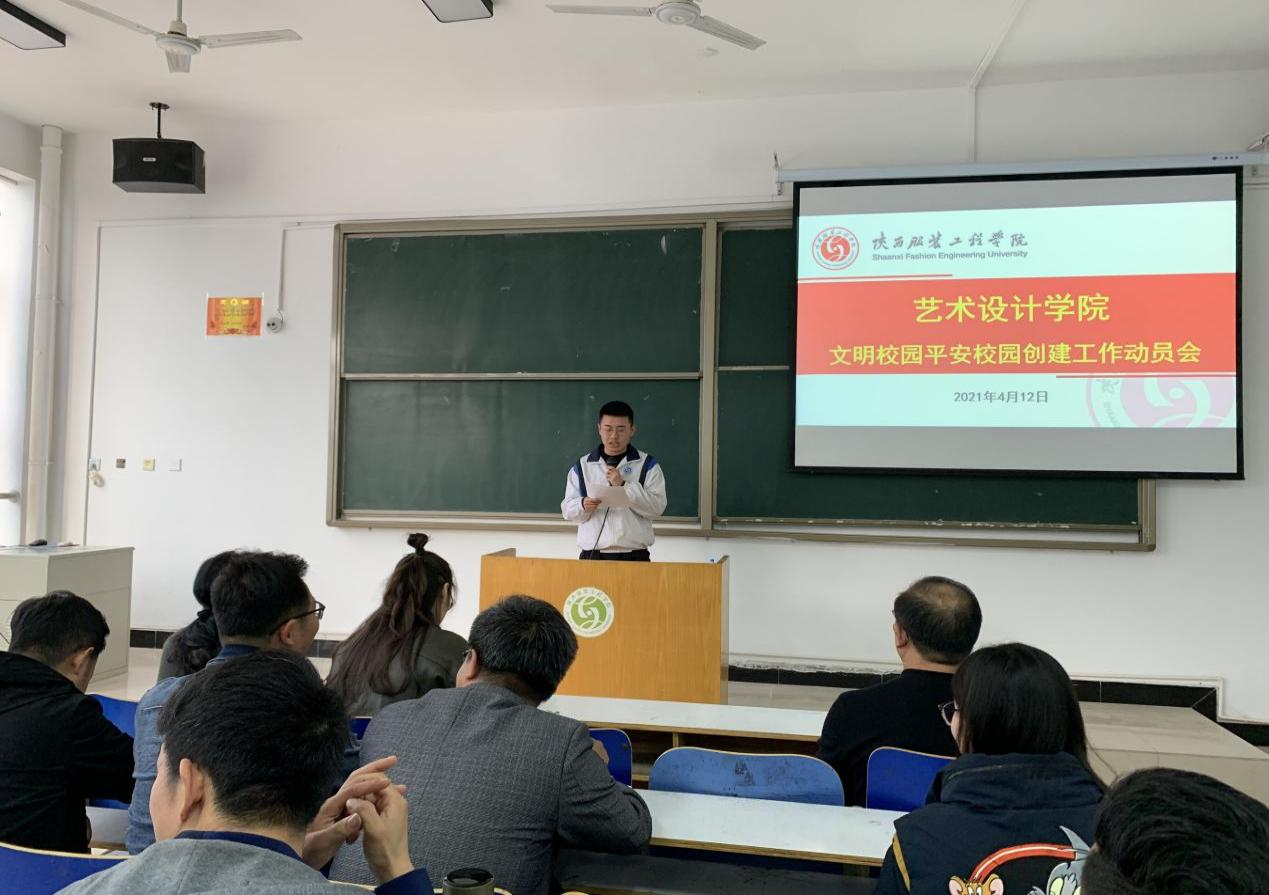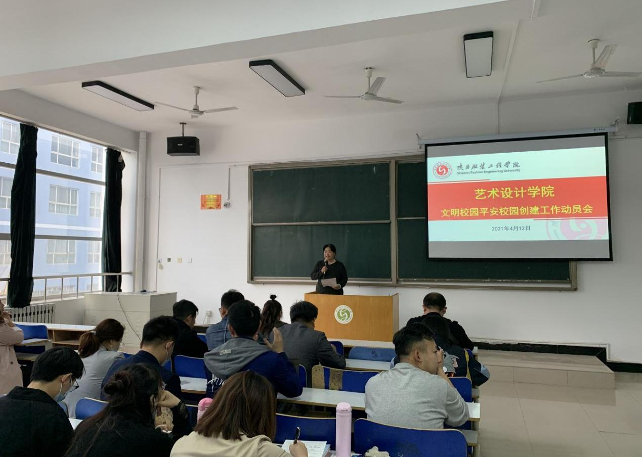 陕服新闻网讯(闫江婷)根据学校创建文明校园和平安校园工作统一部署,艺术设计学院于4月13日16:00,在F316教室召开文明校园平安校园创建工作动员会议,全体教师和学生代表参加了动员会。我院党总支书记、副院长时晓楠,副院长任晓丽出席了会议。办公室主任野苏民主持会议。