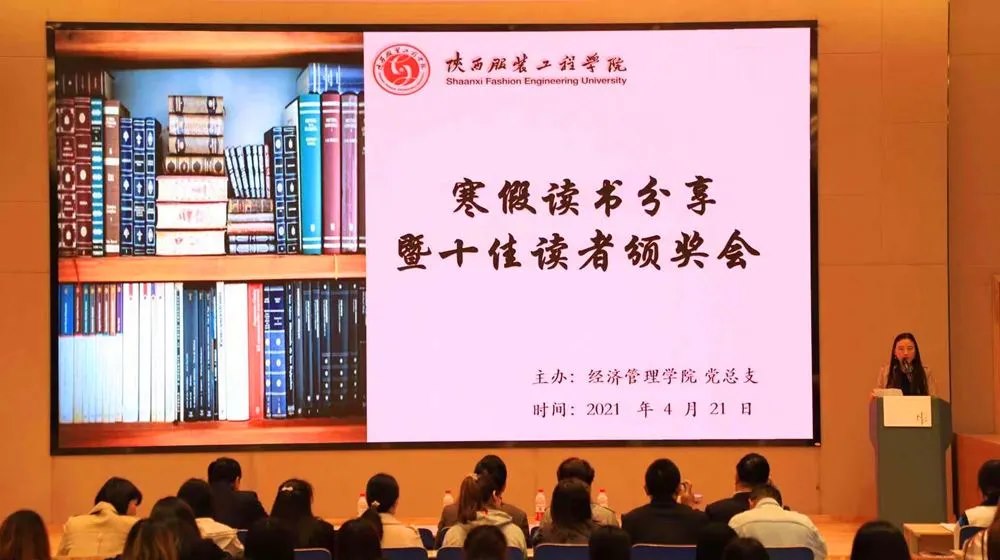 陕西网咸阳站2021-04-23 09:35:19在第二十六个世界读书日来临之际,陕西服装工程学院经济管理学院在E1-4多功能会议室举行学生寒假读书分享暨“十佳读者”颁奖会。校长张义明教授出席,并为“十佳读者”颁奖,经济管理学院师生代表400多人参加了会议,会议由杨生博院长主持。