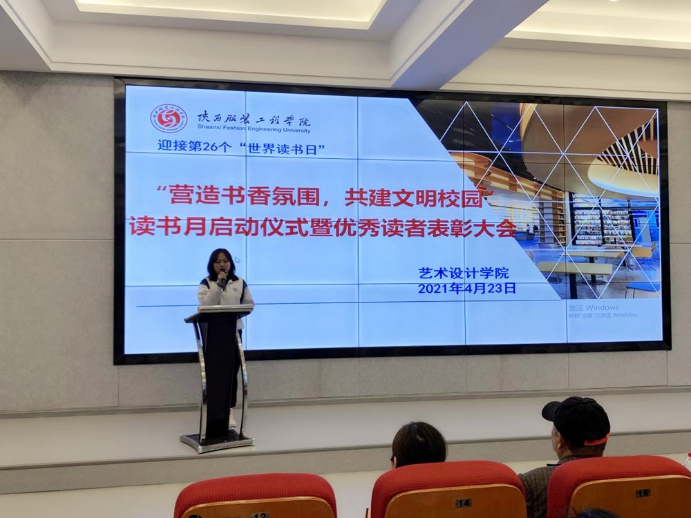 陕服新闻网讯(艺术设计学院)最是书香能致远,腹有诗书气自华。为了进一步营造良好的校园书香文化,激发学生“爱读书、读好书、善读书”的热情。正值第26个“世界读书日”之际,艺术设计学院于4月23日下午在E2-4报告厅举行“营造书香氛围,共建文明校园”读书月启动仪式暨优秀读者表彰大会。