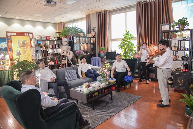 最后,王建利书记特意看望了陕西省劳模唐明晰教授,参观了唐明晰工作室。同时了解了唐明晰教授在人工智能与中国传统优秀民族文化结合方面作出的积极探索和取得的成果,对他孜孜不倦、精益求精的大国工匠精神表示钦佩。王建利书记还听取了我校通过挖掘引进民间工艺大师,开展黑陶工艺、剪纸艺术研究,对学生进行教育熏陶、传承中国优秀传统民间文化方面所作工作的介绍。