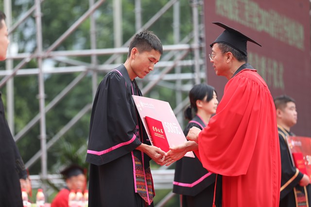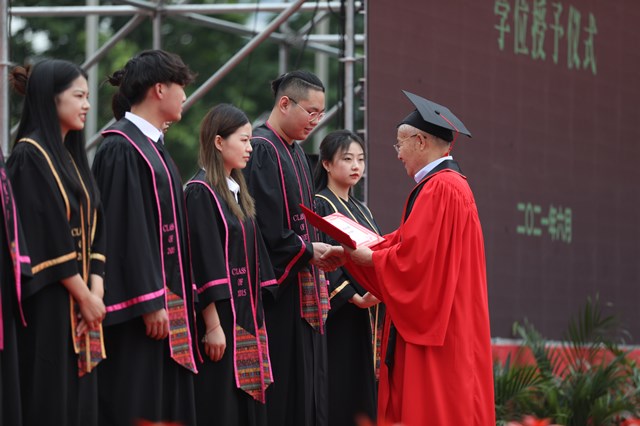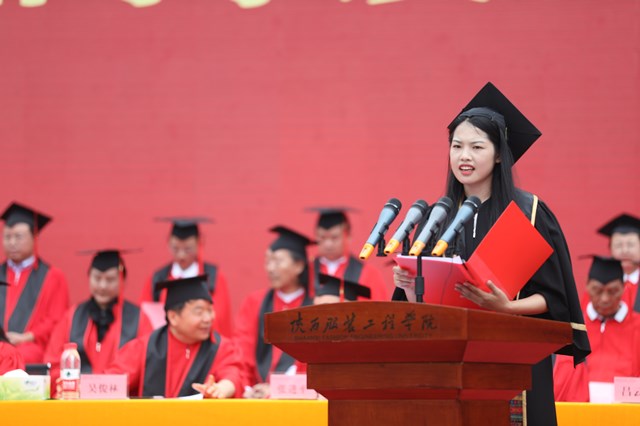 在毕业典礼上,副校长李宗领教授宣读了表彰决定,张生朝先生为省级优秀毕业生颁奖,董事长吕明博士为校级优秀毕业生颁奖,张义明校长为考研学生代表颁奖,温锋书记为援疆学生代表颁奖;全体毕业生还进行了宣誓,许下了矢志不渝、报效祖国的铮铮誓言。