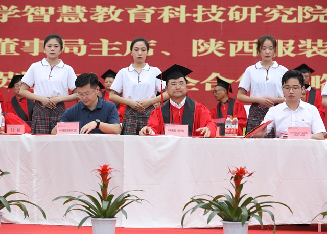 我校在继与华为、如意、阿里、京东等世界知名企业签约,积极开展校企战略合作之后,在毕业典礼暨学位授予仪式上,校董事会又与苹果公司江苏创森智云信息科技有限公司、中国邮政储蓄银行股份有限公司咸阳市分行、国动网络通信集团股份有限公司、上海国动实业集团有限公司、中国服装科创研究院、中国工商银行股份有限公司咸阳分行、北京师范大学智慧教育科技研究院分别签订《校企合作战略框架协议》,校企签约将在5G技术、人工智能、大数据、智能制造等方面开展精品课程资源、实践教学、文化创意、科学研究战略合作,中国邮政银行授信50亿支持我校建设发展,工商银行将在人才培养、实习就业等方面为我校提供支持。