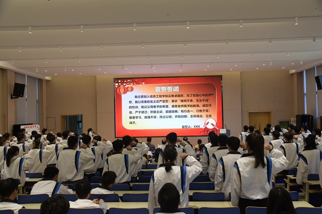进入卓越班的55名同学进行了宣誓。梁晨同学领誓。