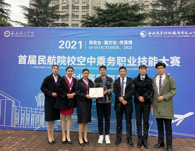 陕服新闻网讯(左菊香)2021年10月15日,我校服装学院空中乘务专业在2021年首届民航院校空中乘务职业技能大赛中荣获团体三等奖。本次大赛为全面贯彻习近平总书记在全国职业教育大会上对职业教育工作的重要指示精神,落实民航局党组对专业人才培养的要求,进一步推进院校民航空中乘务专业建设,以赛促教、以赛提质、以赛培优。协会拟在全国民航职业教育教学指导委员会的指导下,举办2021年首届民航院校空中乘务职业技能大赛。
