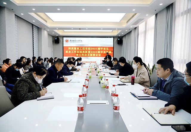 陕服新闻网讯(李文斌)11月26日下午,我校在国学院一楼会议室召开2021届毕业生就业工作总结表彰暨2022届毕业生就业工作动员部署会议。会议全面总结了2021届毕业生就业工作,表彰先进集体和个人;对2022届毕业生就业工作提前动员部署,要求各有关部门和个人提高政治站位,早谋划早安排早动手,切实做好2022届毕业生就业工作。校长姜寿山出席会议并就招生就业教学等事关学校发展的重要政策给大家做深入解读。校长助理、招就处处长李钊主持会议并作总结。校长助理、学生处长刘继兵出席会议,就业办主任邵智勇、招生办主任薛丽萍、各二级学院主管就业工作的负责人、学工办主任、2021届、2022届毕业班辅导员等参加会议。