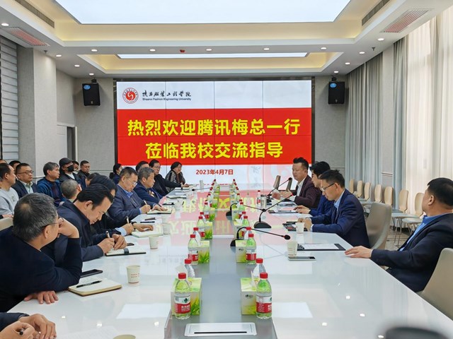陕服新闻网讯(张玮)4月7日,腾讯生态流量运营架构师/腾讯生态数字化转型架构师/腾讯生态康本科技首席执行官梅总、腾讯生态康本科技首席运营官胡润一行莅临陕西服装工程学院交流洽谈并进行战略合作。镐京国际教育集团董事局主席吕明博士主持交流合作会议。集团副董事长吕超、陕西服装工程学院校长姜寿山、党委书记王军周、常务副校长黄新民;陕西科技大学镐京学院校长兼党委书记刘子建、常务副校长黄国泉等参加洽谈。