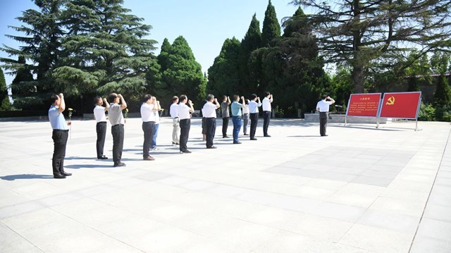 在渭华起义纪念馆,党委书记王军周、校长姜寿山带领大家顶着烈日,拾级而上,依次参观瞻仰中心广场、烈士纪念碑、渭华起义陈列馆、渭华起义指挥部旧址,深切缅怀、祭奠、纪念唐澍、刘志丹、谢子长、王泰吉等革命先辈和革命先烈。在烈士纪念碑前,全体同志默哀,向革命先烈三鞠躬,向烈士敬献了花篮。在鲜红的党旗下全体党员庄严宣誓,重温入党誓词,不忘入党初心。在王泰吉等同志简陋的办公室里,在埋葬着11名英勇牺牲的渭华起义烈士的古井边,在“同志们赶快踏着先烈的鲜血前进”的砖铺标语前,同志们瞻仰遗物、仔细听讲解员讲述先辈先烈的英勇事迹和伟大业绩,心情久久不能平静。
