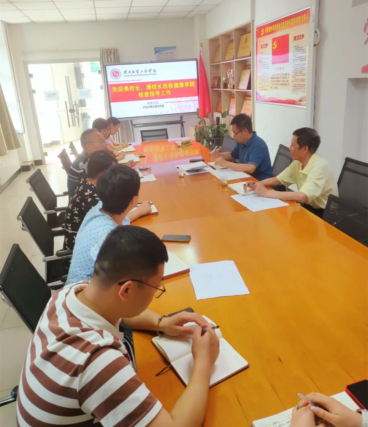 上午,姜寿山、潘庆才在健康学院会议室,听取学院工作汇报,同与会人员进行了座谈交流。