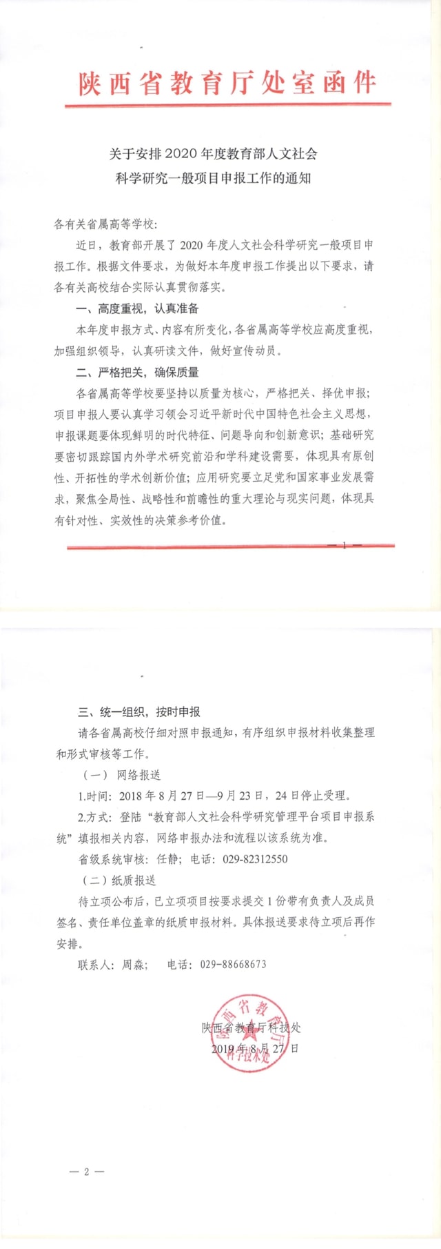 现将教育厅通知《关于安排2020年度教育部人文社会科学研究一般项目申报工作的通知》转发给你们请认真