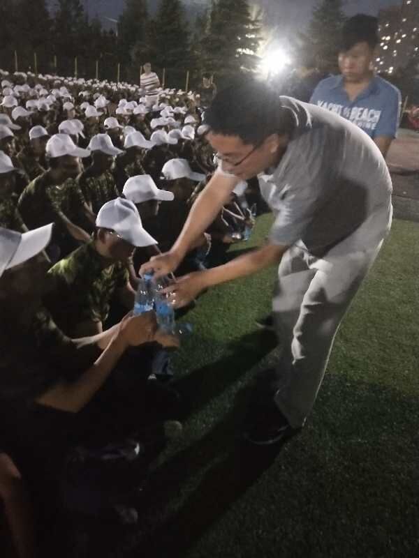 期间,罗院长、熊院长察看了同学们训练情况,对学生们认真地参加军训活动给予了充分肯定,赞扬了同学们服从纪律、不怕吃苦、敢于挑战的精神,鼓励大家继续坚持,努力完成好军训任务。同时,向参训新生发放了纯净水,并表示了亲切的问候和关怀。