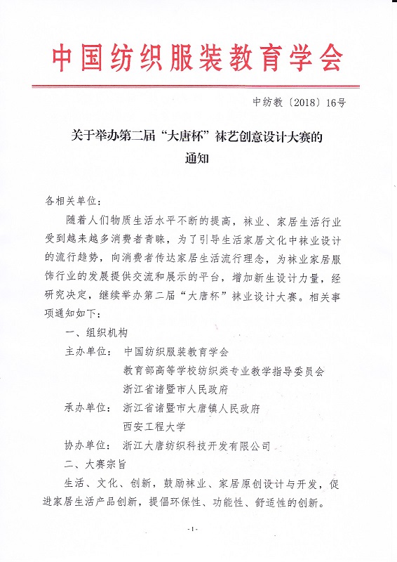 关于举办第二届“大唐杯”袜艺创意设计大赛的通知