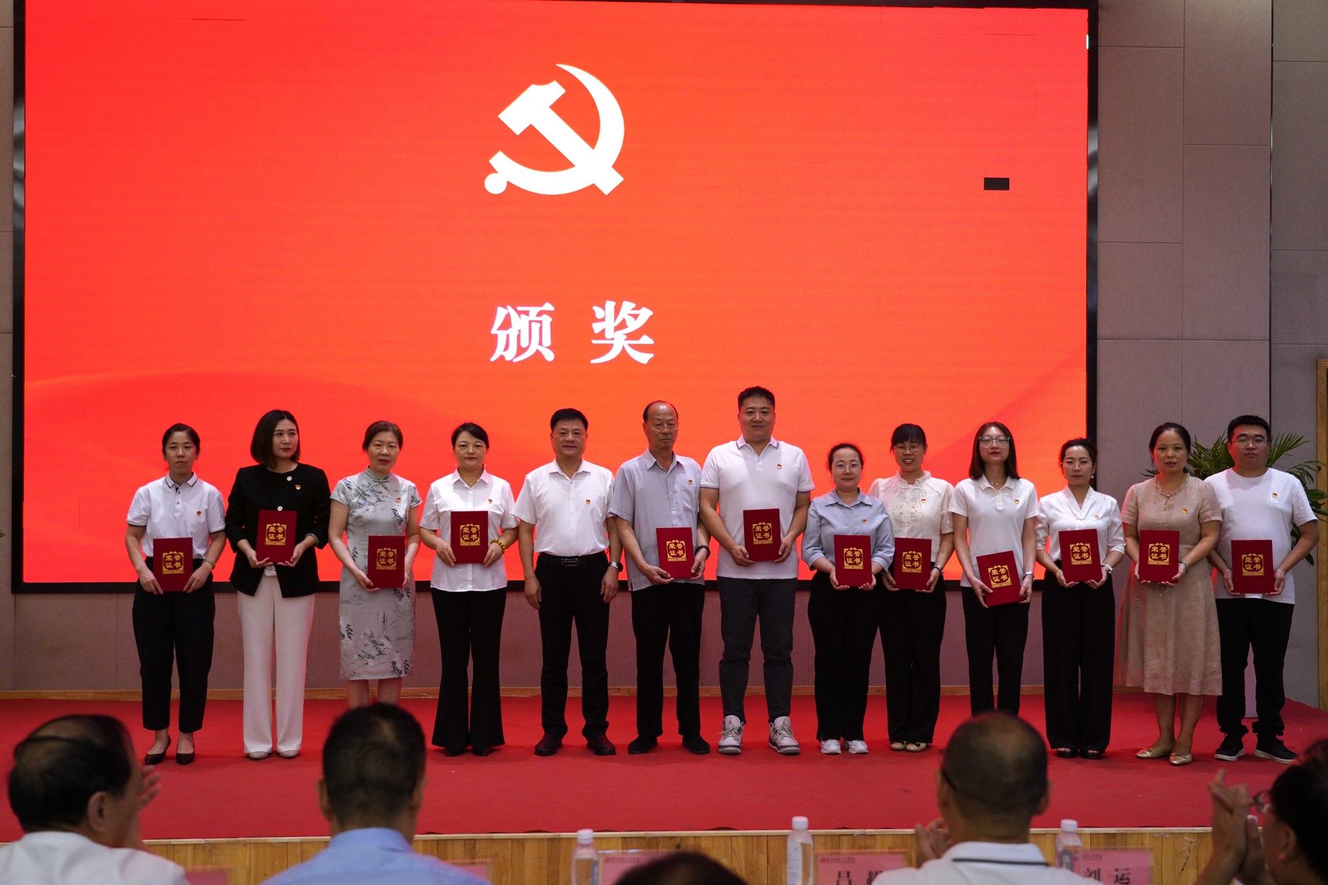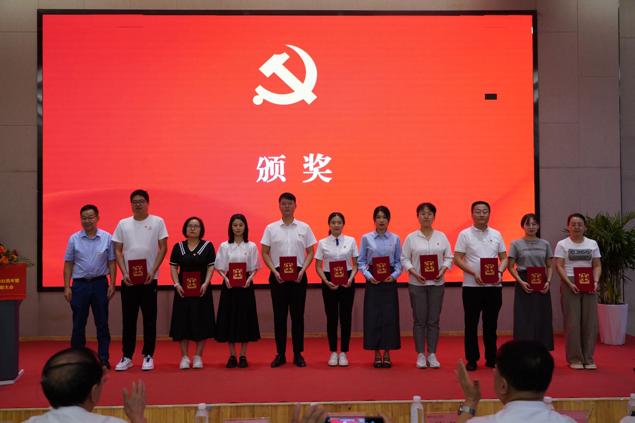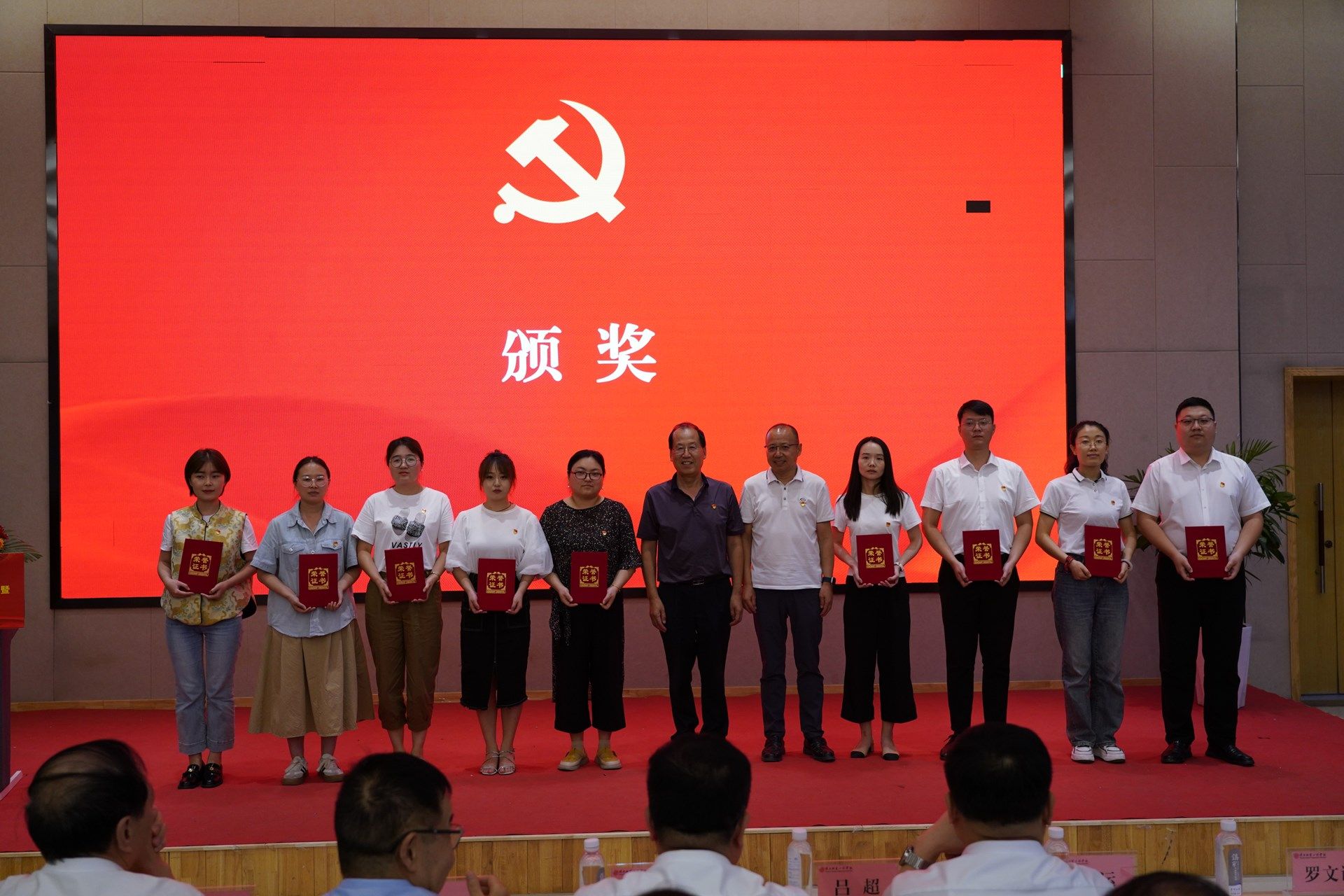 与会校领导王岗、吕超、校长姜寿山、副校长黄新民、副校长刘运、党委委员校长助理罗文谦等为受表彰的先进基层党组织、优秀党务工作者、优秀共产党员代表、优秀学生思想政治教育工作者颁奖。
