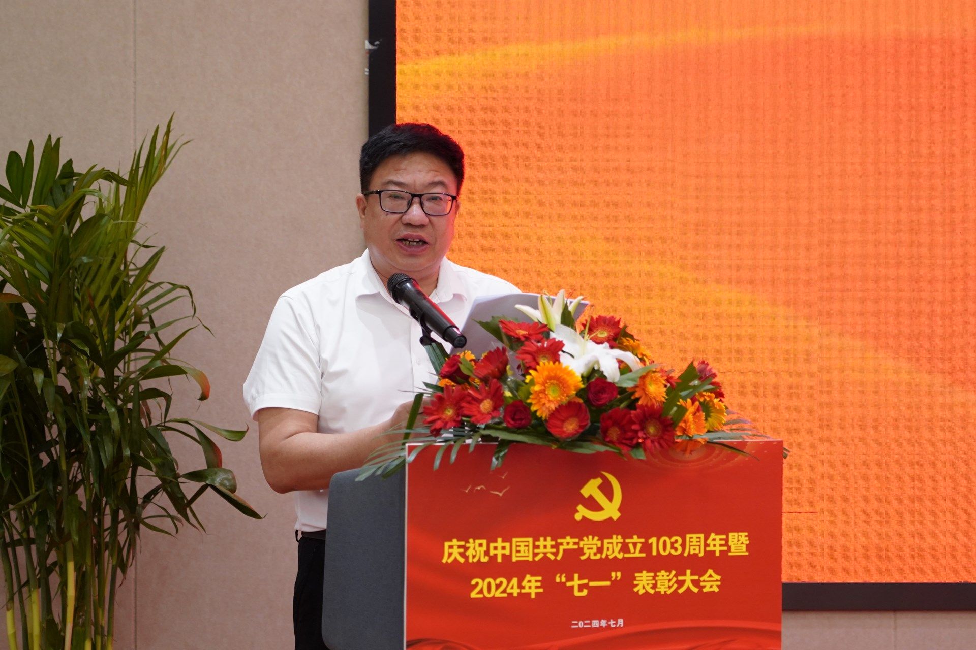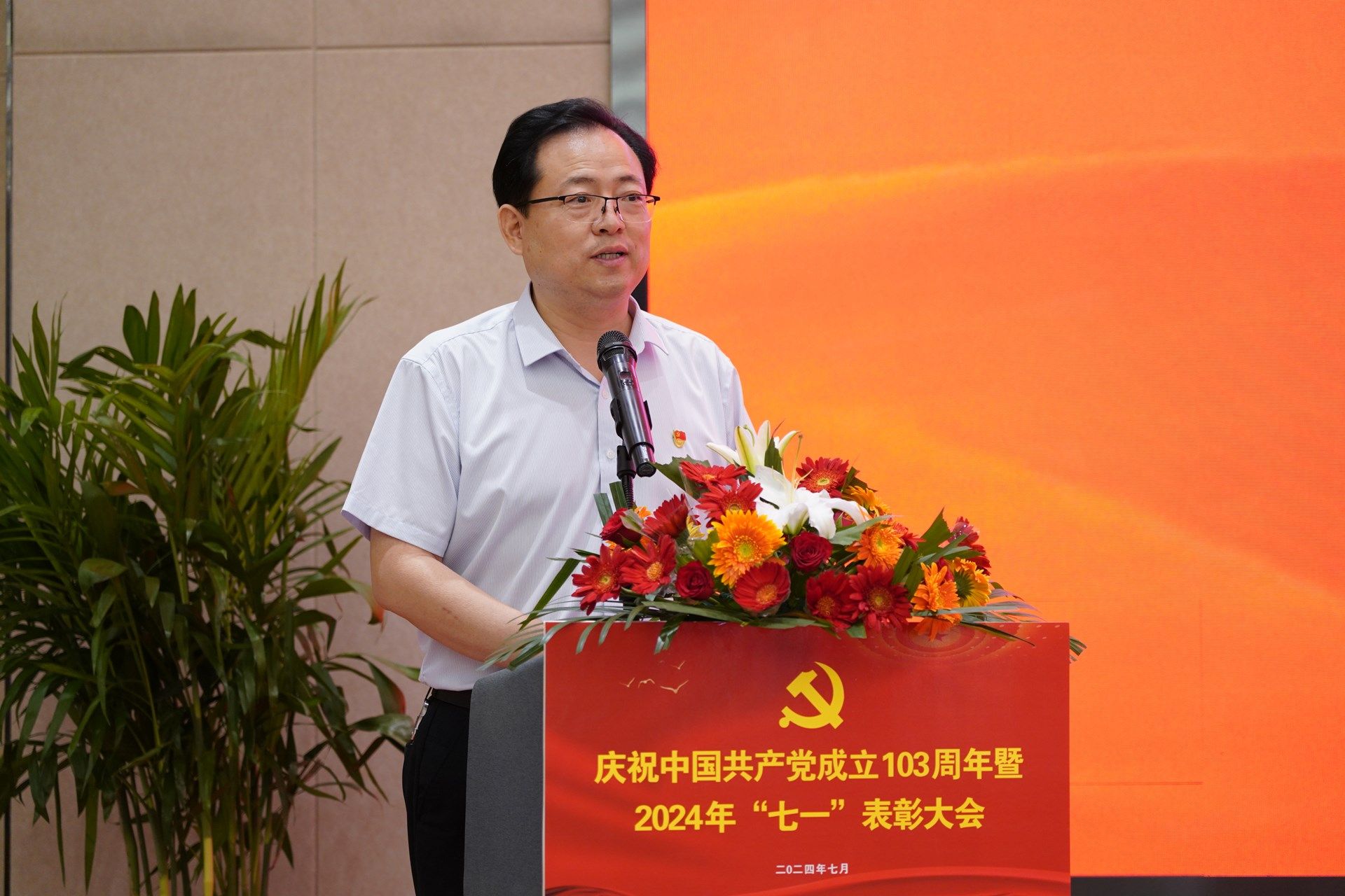 校党委书记王岗发表了讲话。王岗指出,今天是中国共产党103周年华诞,我们在这里举行庆祝中国共产党成立103周年暨2024年“七一”表彰会,表彰为学校发展作出积极贡献的先进基层党组织、优秀共产党员、优秀党务工作者、优秀学生思想政治教育工作者。重温党的光辉历程,缅怀革命先烈丰功伟绩,弘扬伟大建党精神,动员和激励全校党员干部和师生员工坚定信念、践行宗旨、踔厉奋发、团结一心,为推进学校高质量发展再创佳绩!
