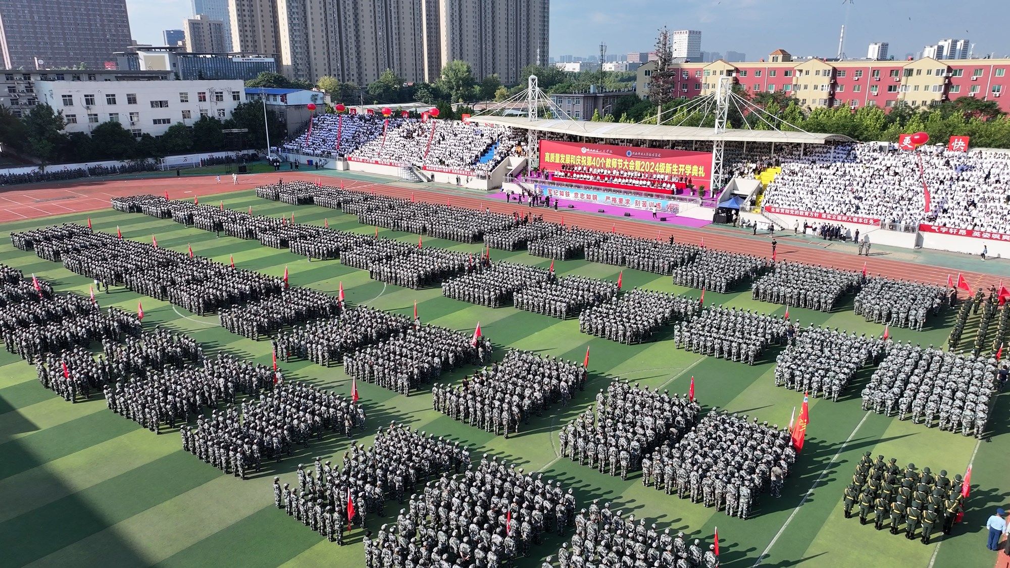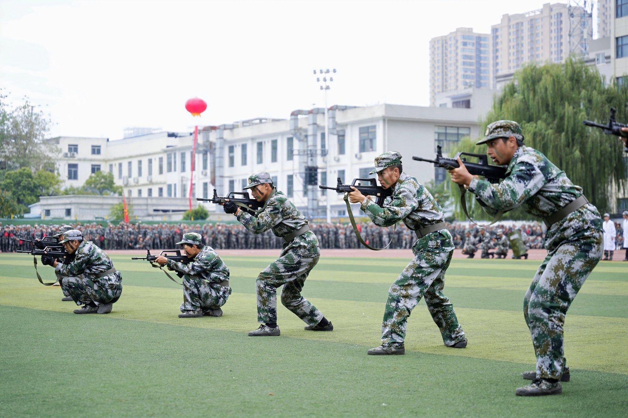 两校5700名新生,在国旗护卫队带领下,依次经过主席台,满身戎装的同学们精神抖擞,目光坚定,步伐整齐,精彩展示赢得全场师生阵阵掌声,随后进行了精彩纷呈的国防教育汇报表演。