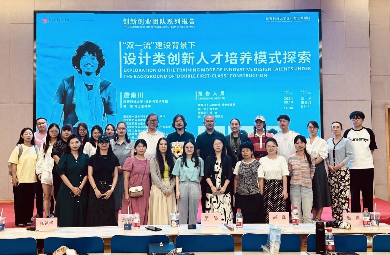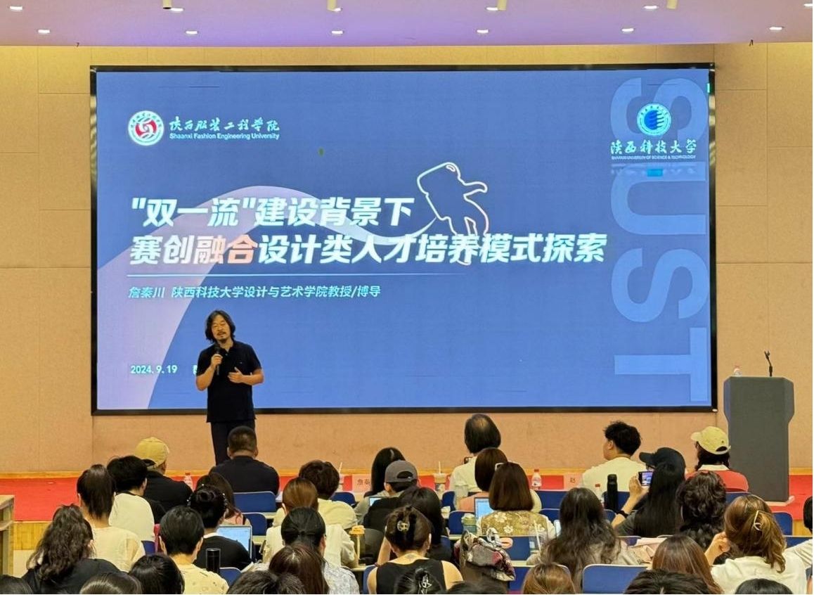 陕服新闻网讯(艺术设计学院)为全面落实艺术设计学院专业建设与科研工作高质量发展目标,9月19日下午,我校邀请陕西科技大学设计与艺术学院詹秦川教授及其带领的创新创业团队作了题为《“双一流”建设背景下赛创融合设计类人才培养模式探索》学术讲座。讲座由艺术设计学院执行院长时晓楠主持,艺术设计学院、服装学院、信息工程学院、教育学院等学院教师代表、学生代表近400人参加本次讲座。