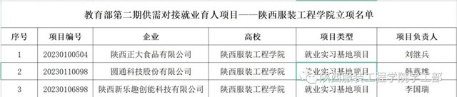 陕服新闻网讯(董良超)近日,教育部发布了《教育部高校学生司关于公布第二期供需对接就业育人项目立项名单的通知》(教学司函〔2023〕6号),经高校与用人单位联合申报,专家审核等流程,我校共有3个项目获批教育部第二期供需对接就业育人项目立项。