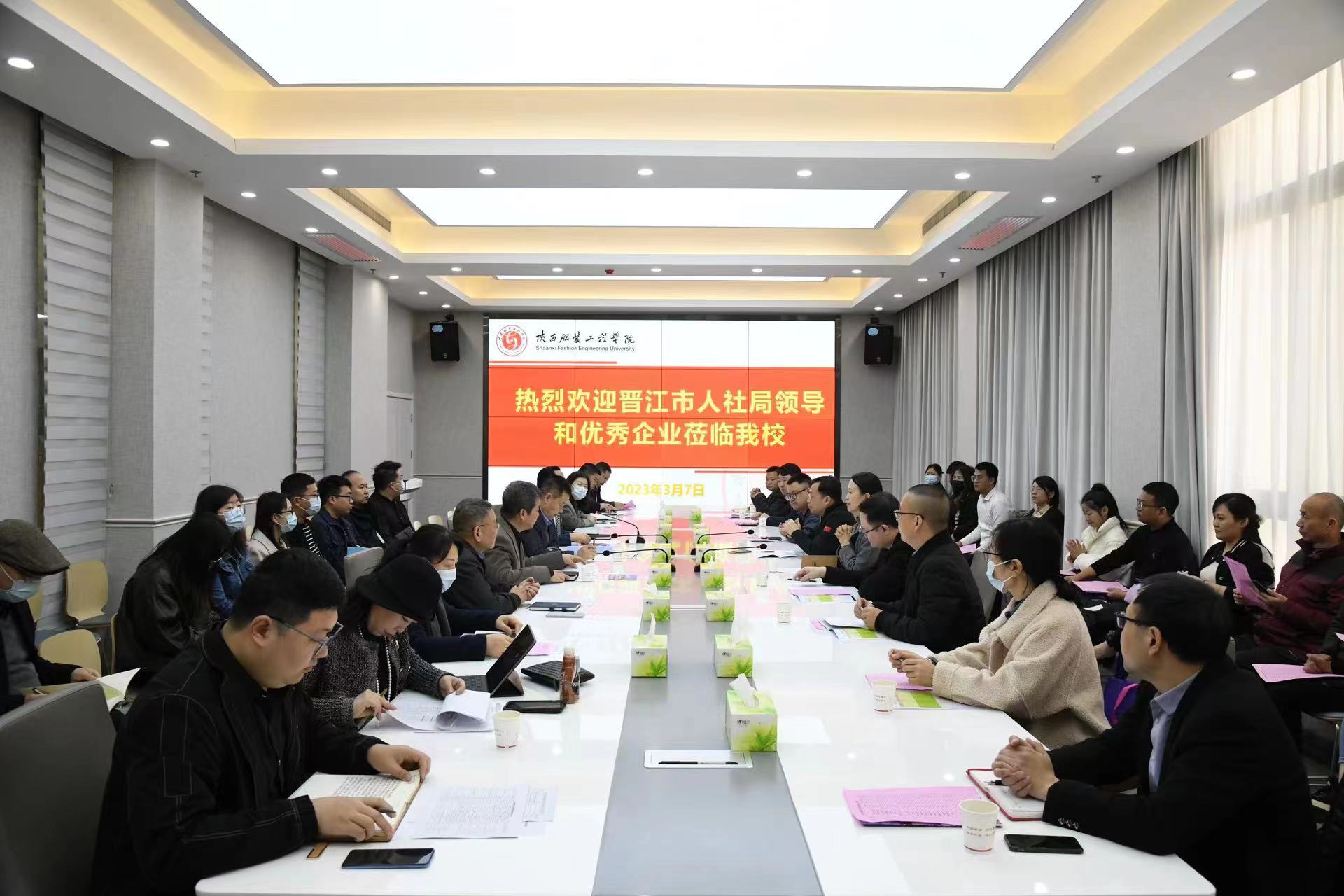 陕服新闻网讯(就业办)人才是第一资源,就业是最大的民生。经前期学生处与晋江市人力资源局充分对接,2023年3月7日上午,由福建省晋江市人力资源局局长柯发音带队,组织利郎(中国)、向兴纺织、信泰印染、兴业皮革、云强贸易等22家知名企业来我校开展校企合作,人才对接。校长姜寿山,党委书记王军周,各职能部门和二级学院分管就业工作的院领导、学工办主任参加会议,会议由副校长李宗领主持。