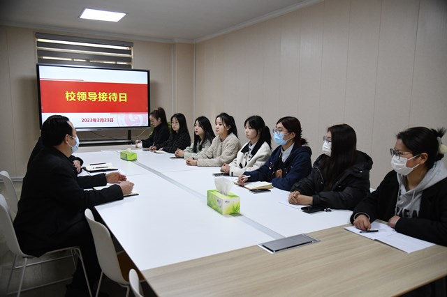 陕服新闻网讯(李文斌)2月23日,学校在行政中心举行新学期首次校领导接待日活动,李宗领副校长就学生关心的成长道路、青春困惑、学习生活、就业、职业发展规划等与学生代表进行了深入交流,耐心听取了学生有关学习、生活方面的意见和建议,逐一答复了学生关心的有关问题,并责成有关部门对学生反映问题进行梳理,建立台账清单,压实责任,立行立改,切实解决好存在的问题。鼓励学生坚定理想信念,志存高远,励志成才,德智体美劳全面发展,在学习过程中锤炼意志品格,磨炼责任担当,提高综合素质和实践能力。希望学生们牢记当代大学生的历史使命,以建设中国特色社会主义现代化强国、实现中华民族伟大复兴为己任,把自己培养成为德智体美劳全面发展的社会主义事业的建设者和接班人。