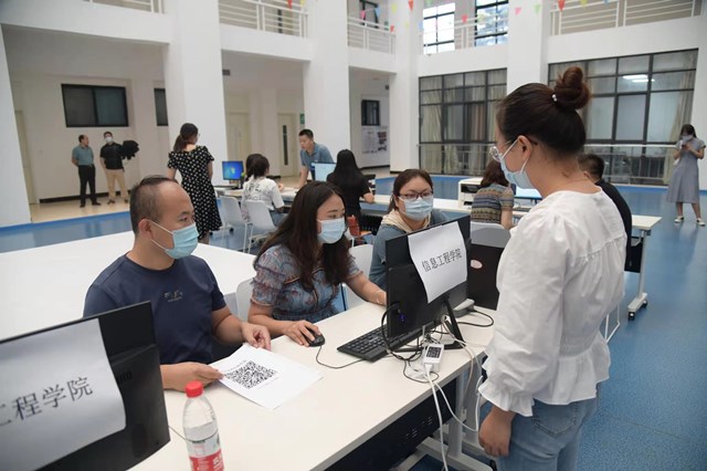 办理完成后,新生被学校接待人员引导到各学院窗口,与学院对接,找到学院负责分配宿舍的老师,等待分配宿舍。到宿舍把行李安顿好之后,新生就可以持报到单到体育馆领取公寓物品。