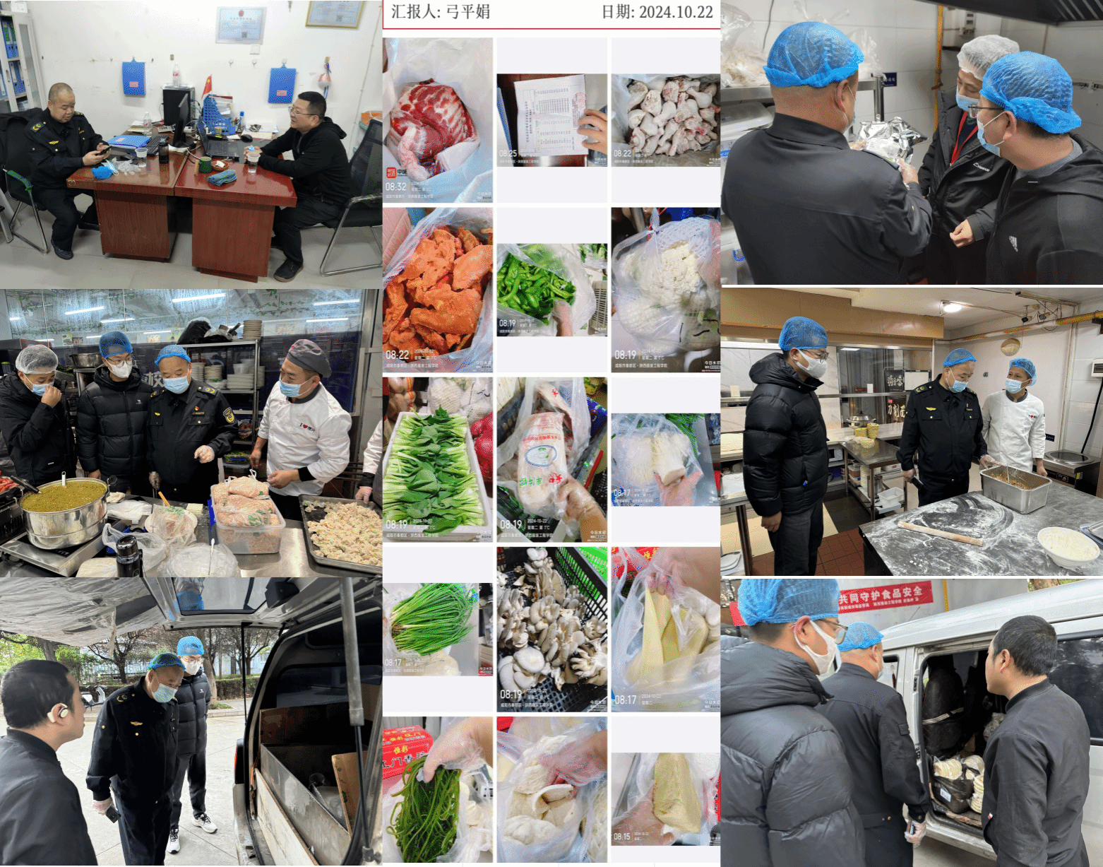 10月21日上午,副校长刘运、后勤处副处长吴优、后勤处综合服务科科长李海卫、校食品安全员组成检查组,深入餐厅开展校园食品安全专项大检查。检查组到各食堂核查营业执照、食品经营许可证、从业人员健康证;核查食品安全监管工作台账;核查食材采购、验收、存储情况,以及储存条件、保质期、感官性状等;深入后厨检查食材清洗、切配、烹饪、餐用具清洗消毒、食品留样等工作。通过实地核查检查,确保大宗物资采购流程合规,确认各种食材货票相符,食品原材料感官性状无异常,食品加工制作过程安全规范。