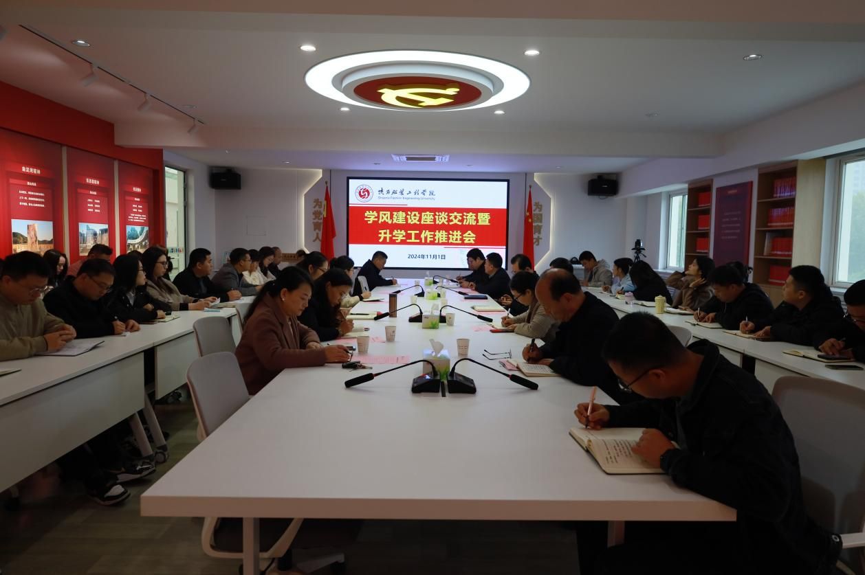 陕服新闻网讯(张维峰)111日上午,学校在行政中心326会议室召开学风建设座谈交流暨升学工作推进会,副校长潘庆才、党委副书记刘继兵出席并讲话,教务处、招生办、科技处、学生处负责人和各学院分管领导、副书记、辅导员代表共50余人参加,会议由学工部副部长董良超主持。