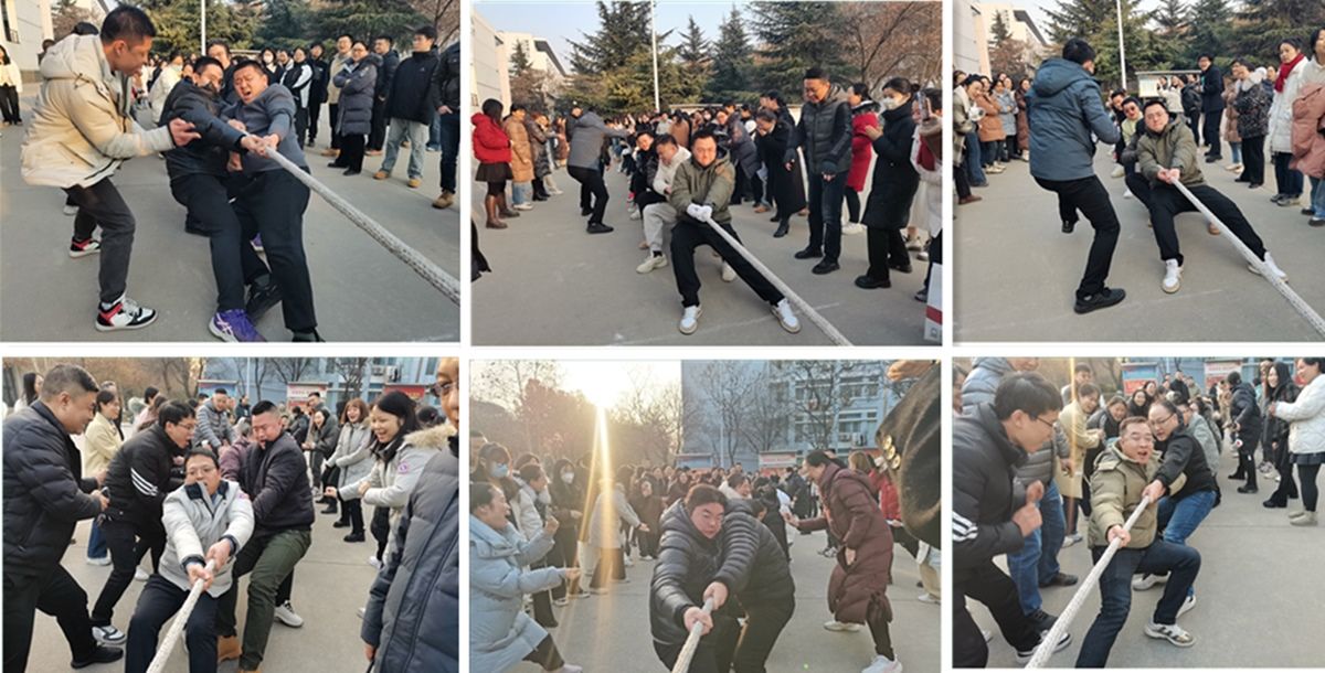 此次拔河比赛,营造了积极向上、朝气蓬勃的校园氛围,增强了团队凝聚力,充分展现了我校教职工齐心协力、奋勇拼搏的精神风貌和万众一心评建攻坚的和谐氛围。