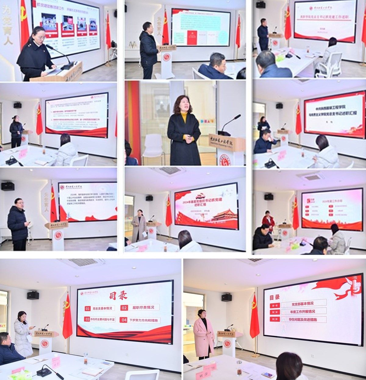 在会上,全校11位院党委(党总支、直属党支部)书记围绕上年度校党委点评和自身查摆问题整改、本年度履行抓党建工作职责情况、存在的问题与不足、下步努力方向及整改措施作了现场述职;参会人员对书记述职进行了民主测评。各基层党组织书记对述职评议考核工作高度重视,认真撰写述职报告、精心制作PPT演示文稿,并对履职尽责情况进行全面展示汇报。