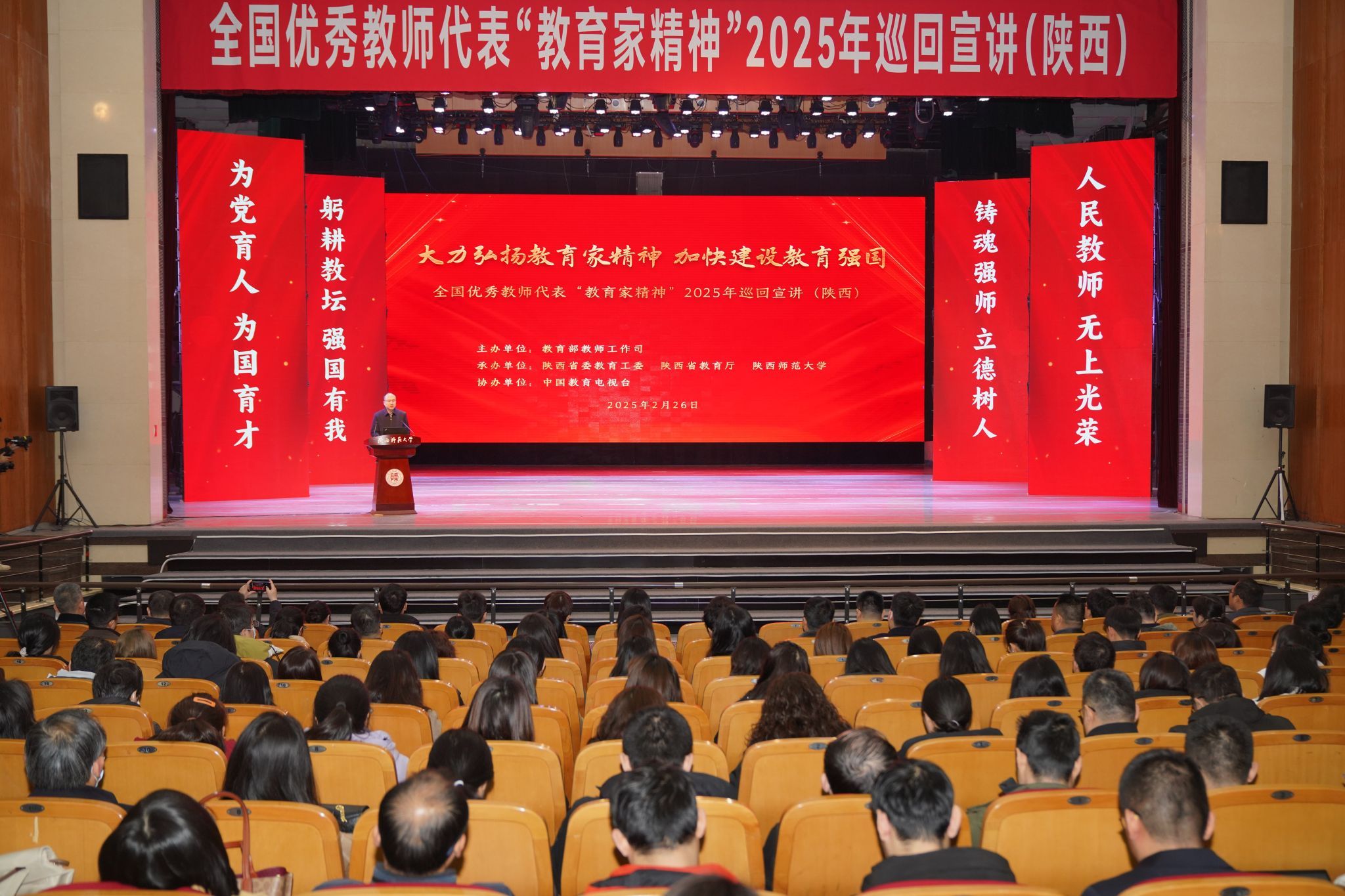 赵鑫在讲话中指出,教育部举办教育家精神2025年巡回宣讲活动,旨在深入学习贯彻习近平总书记关于教育的重要论述,深入贯彻落实全国教育大会精神,来陕西宣讲是此轮宣讲活动的重要一站,并对广大教师提出一要立师德之魂,以优秀教师为榜样,将教育家精神融入日常,化作自觉价值追求;二要强育人之能,把学习践行教育家精神转化为提高自身科学素养和综合素质的实际行动;三要担示范之责,发挥教学名师、优秀育人团队引领作用,让优质资源辐射更多地区、学校和学生,让教育家精神在协同发展中薪火相传。