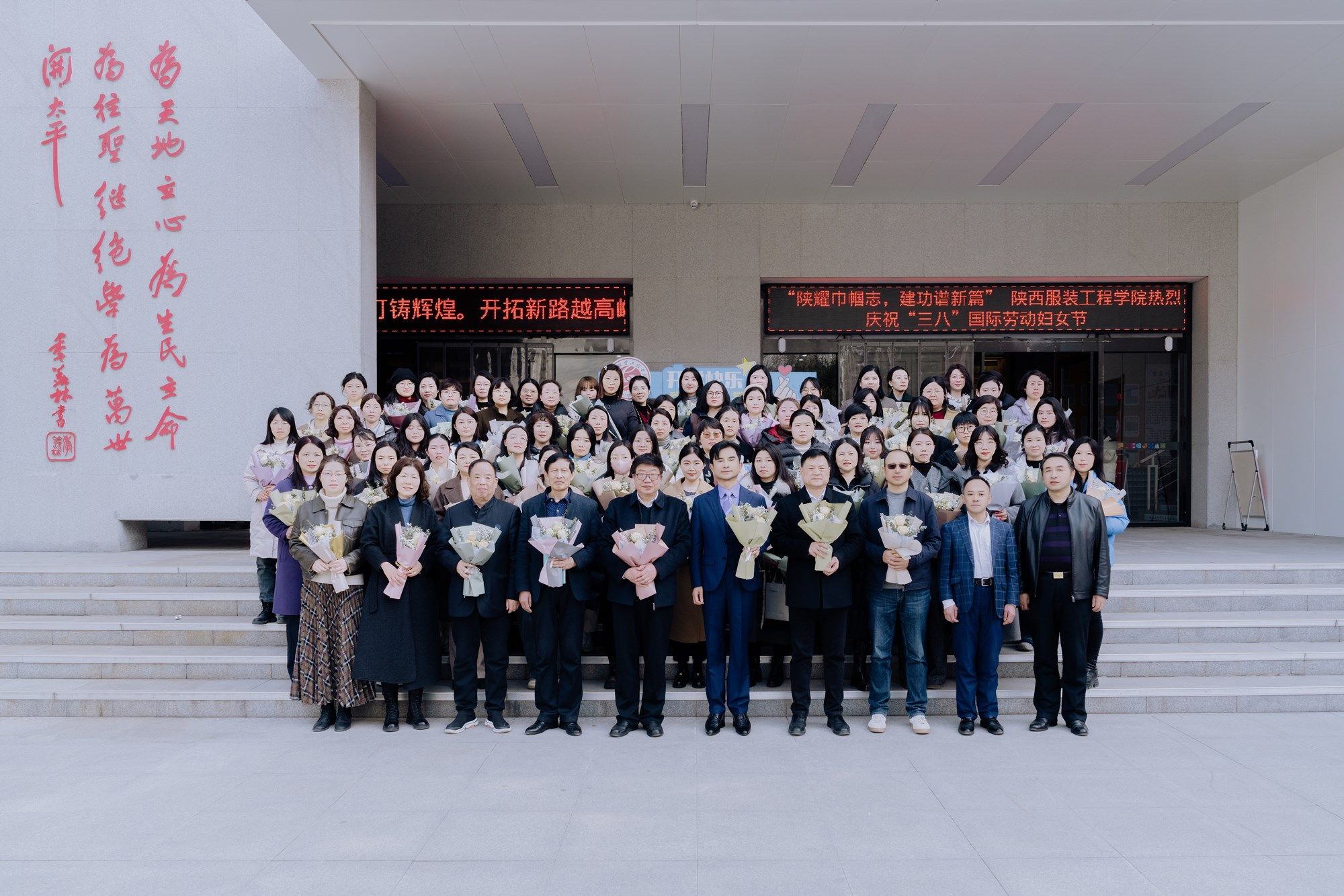 3月7日下午,校工会在图书馆举办了“陕”耀巾帼志,建功谱新篇——共庆女神节,凝心聚力促评估座谈会。校领导为女职工送上鲜花,致以节日的诚挚问候和衷心祝福,感谢广大女职工在各自岗位上的辛勤付出与无私奉献,勉励大家继续努力工作,奋力展现巾帼担当。现场气氛热烈,全校女教师代表齐聚一堂,共同聆听楷模故事,激发奋进力量。董事长吕明博士、副董事长吕超、副校长潘庆才、副校长刘运、工会主席刘明夫出席活动,全体校工会委员、分工会主席、女教职工代表参加活动。党委书记王岗主持会议并作总结讲话。