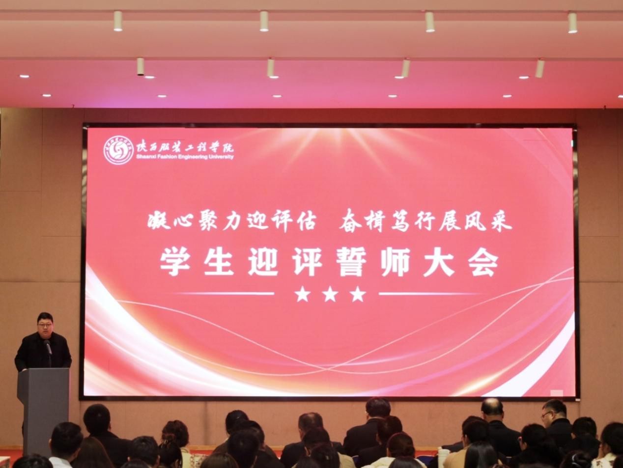 陕服新闻网讯(张维峰)为凝聚学生力量,优化校风学风,全力做好本科教学合格迎评工作,3月19日下午学校在E1-4报告厅召开学生迎评誓师大会,党委副书记刘继兵出席并讲话,会议由学工部副部长董良超主持。