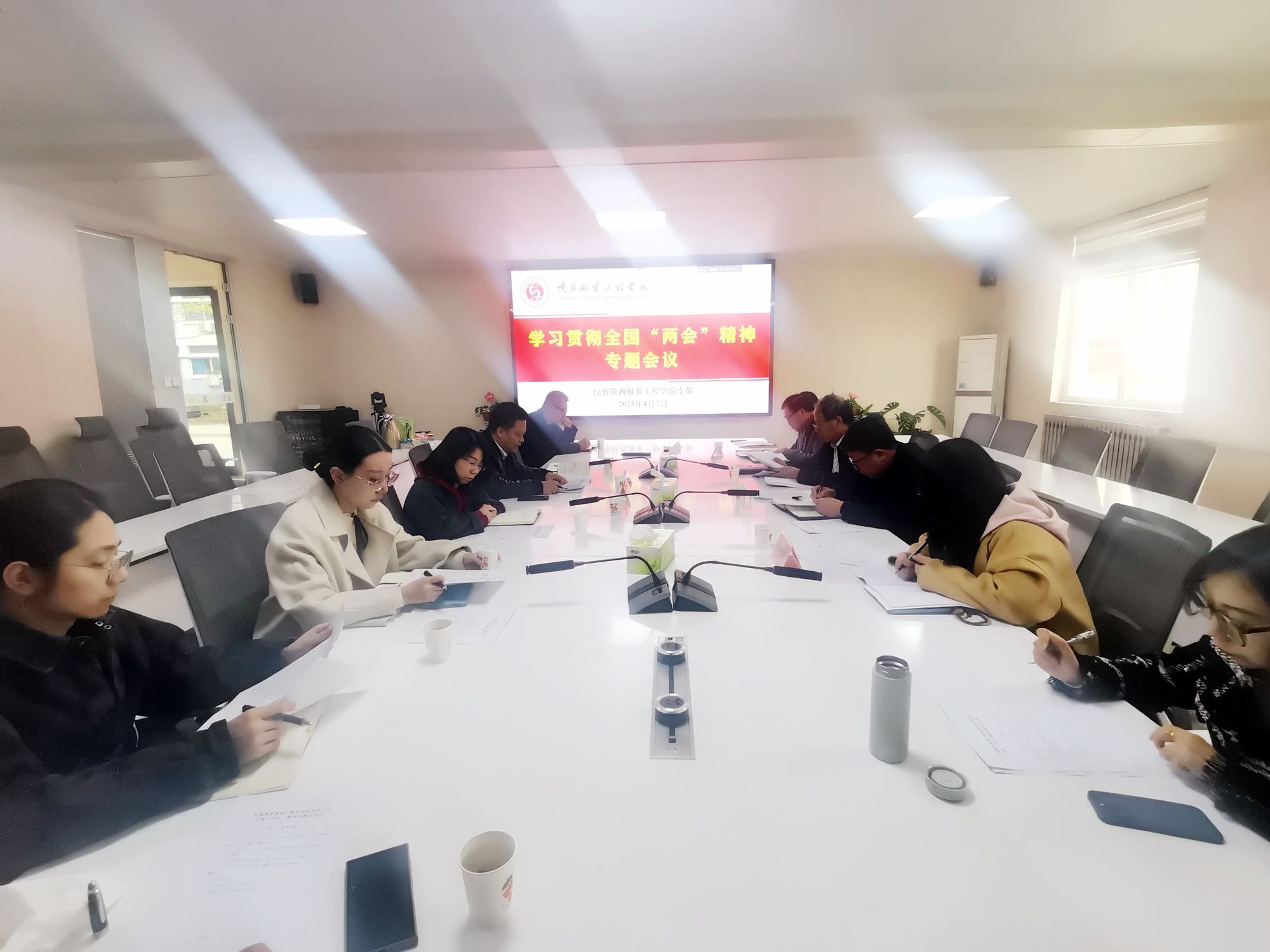 陕服新闻网讯(王改莉)4月2日下午,民盟陕西服装工程学院支部召开学习贯彻全国“两会”精神专题会议,学习传达2025年全国两会精神,研究讨论贯彻落实意见,安排部署支部2025年工作。全体盟员参加会议,支部主委王伟主持会议并讲话。校党委书记王岗、党委统战部部长罗文谦、党委组织部部长伍建成和基础部党政负责人应邀出席会议。