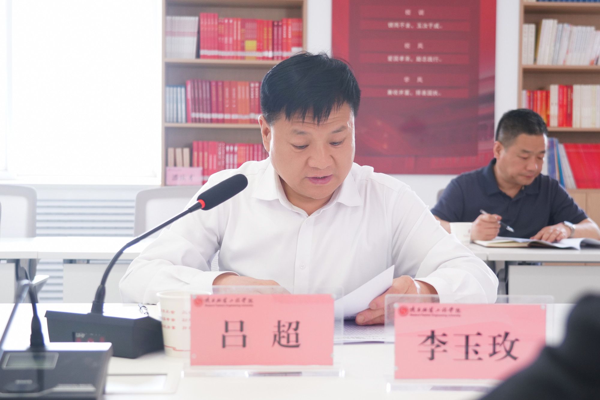 陕服新闻网讯(李文斌)4月22日,学校召开深入贯彻中央八项规定精神学习教育专题读书班第二次学习暨党委理论学习中心组2025年第四次学习会议,把读书班和研讨问题相结合,通过集中学习、观看警示教育片、深入研讨等形式,一体推进学查改, 确保学习教育落地落实。校级领导、党委委员、纪委委员、党政办主任、人事处处长、马克思主义学院院长、各二级学院党委书记、各党总支书记、机关各支部书记参加学习。党委书记王岗主持会议。