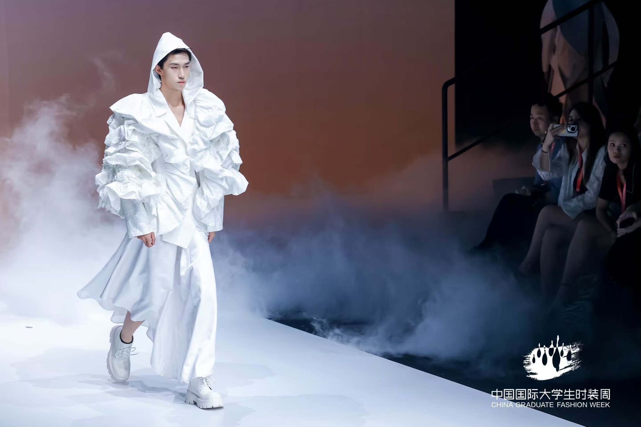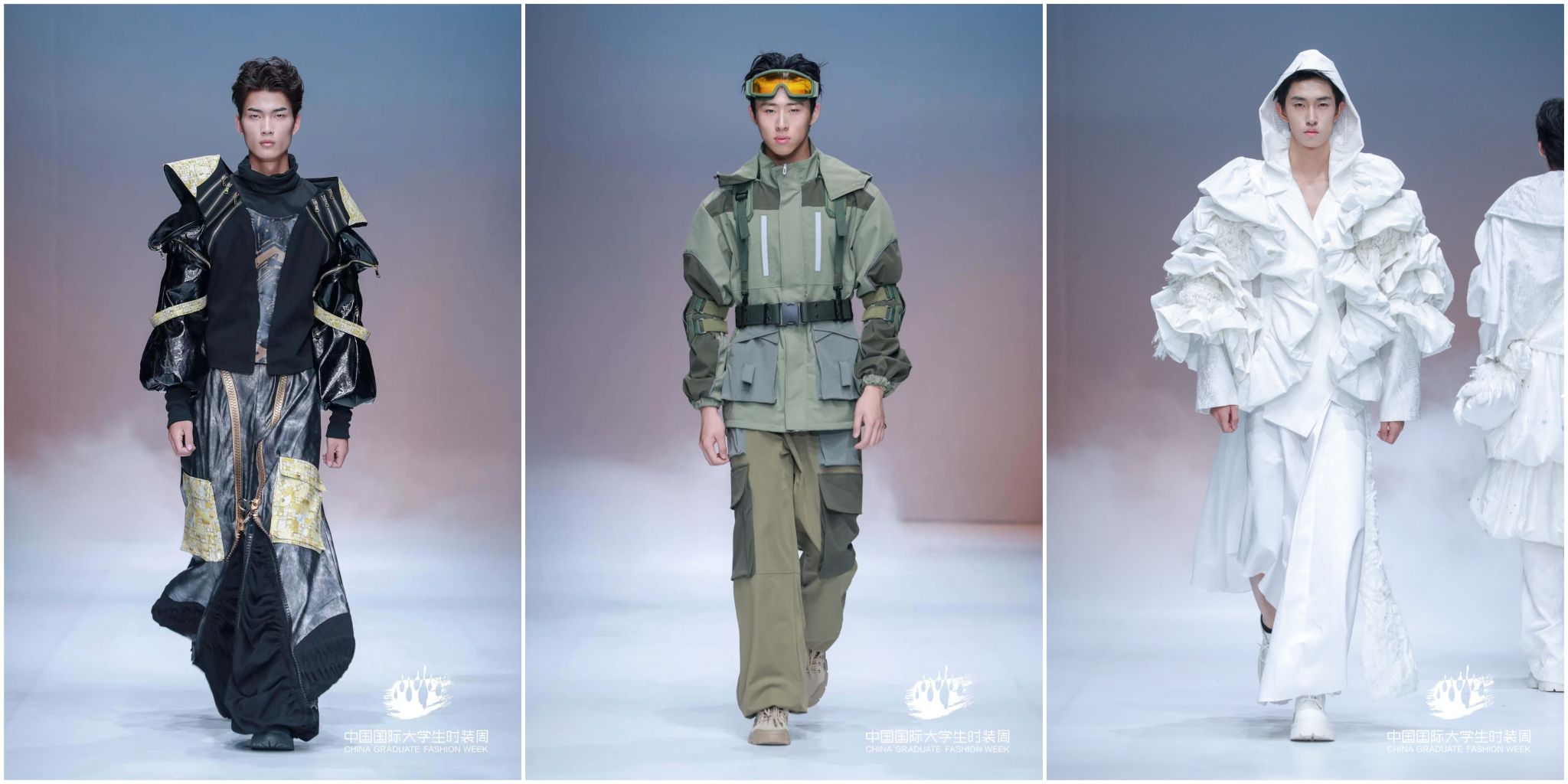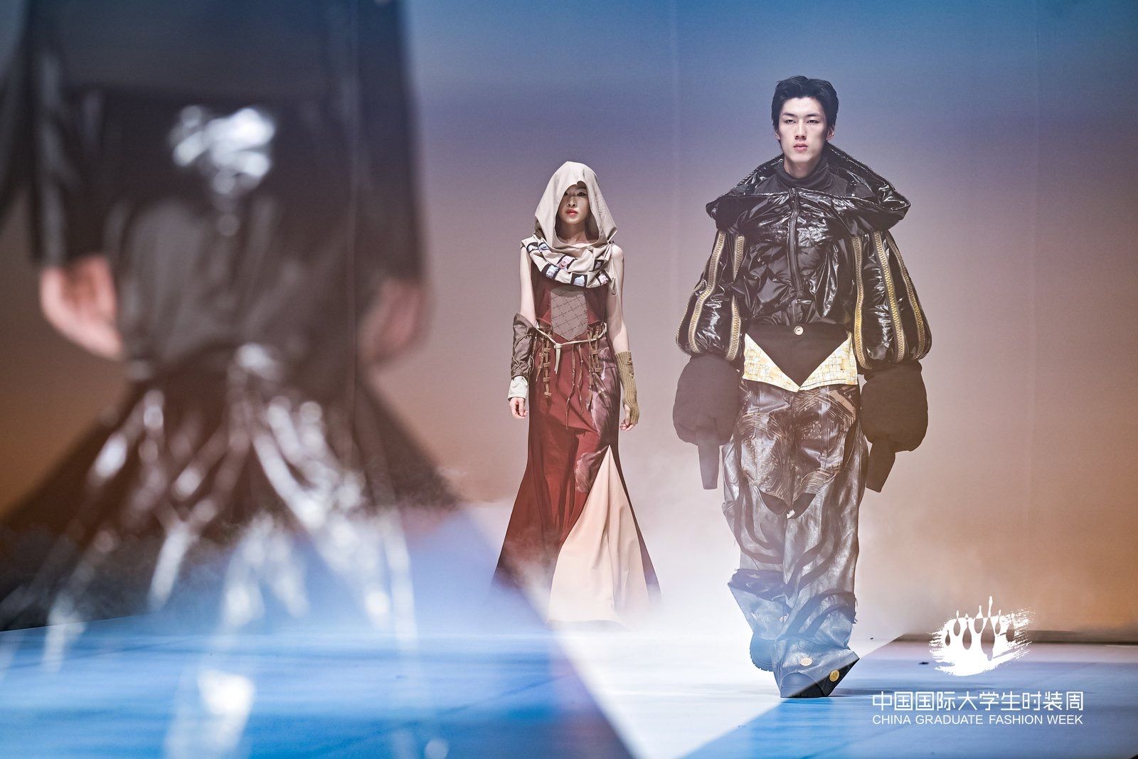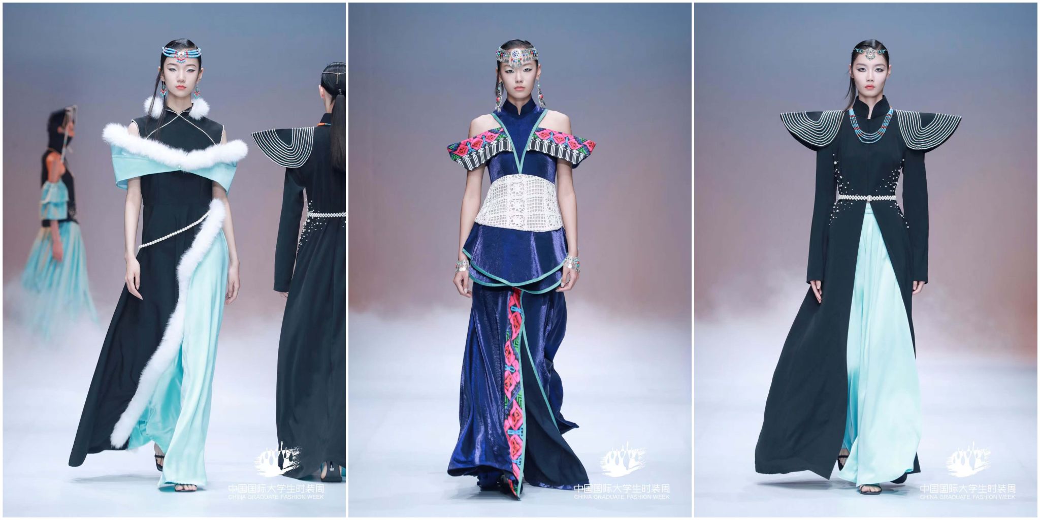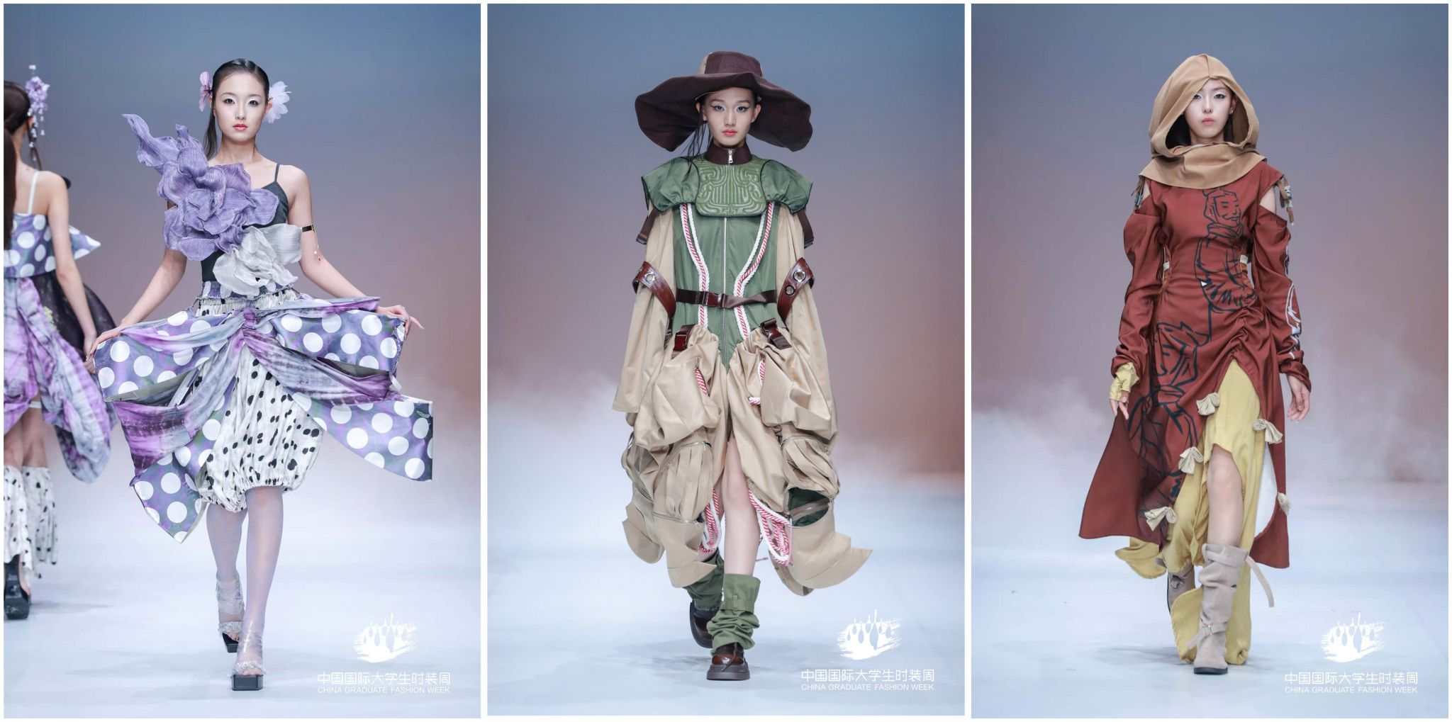 陕服毕业生“丝路·大美山河”主题参展作品,以丝绸之路为灵感源点,“数字与艺术交融,文化与时尚共生”的设计理念,深度挖掘丝路沿线的自然禀赋与人文脉络,用“廓形勾勒地形地貌,纹样诉说历史沧桑”表征中华传统文化的精美。从灵动飘逸的服饰剪裁到独具匠心的图案设计,从传统工艺的创新运用到前沿科技的时尚表达,每一件作品都展现了毕业生作为年轻设计师,对美的独特追求和深厚的艺术造诣,彰显着新时代时尚学子的无限创造力与专业实力,让观众沉浸在一场跨越时空的文化与时尚之旅中,深刻领略到丝路文化的独特魅力与山河之美。服饰之美仿若流转于婉转绵长的层峦叠嶂,每一件作品皆如行走的文化长卷,让千年丝路的壮美山河在T台上徐徐铺展。