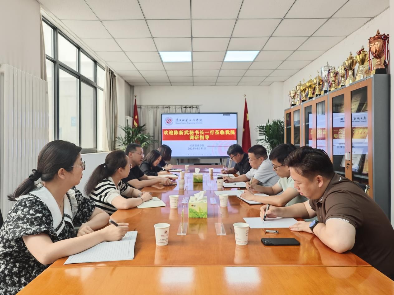 陕服新闻网讯(经济管理学院)6月11日下午,陕西省物流学会秘书长陈新武率、副会长李欣、会员发展部部长周涛、信息化部部长李涛一行来经济管理学院调研交流。经济管理学院执行院长韩燕雄、副院长来燕、党委副书记王韬慧、物流管理系代理系主任姚蓉、实验中心主任肖朝英参加座谈交流。