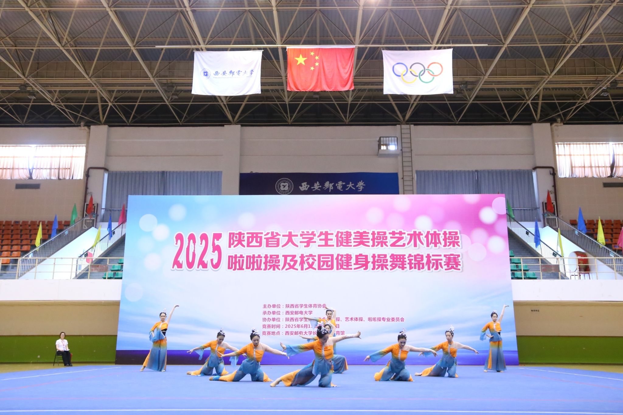 陕服新闻网讯(赵倩)6月12日下午,2025年陕西省大学生健美操、艺术体操、啦啦操及校园健身操舞锦标赛在西安邮电大学(长安校区)体育馆圆满落幕。本次比赛由陕西省学生体育协会主办,西安邮电大学承办,陕西省学生体育协会健美操、艺术体操、啦啦操专业委员会协办。来自全省40所高校900余人参加了比赛。比赛分为健美操、艺术体操、啦啦操和校园健身操舞四个大项和若干小项,并按资格分为甲、乙、丙三组。