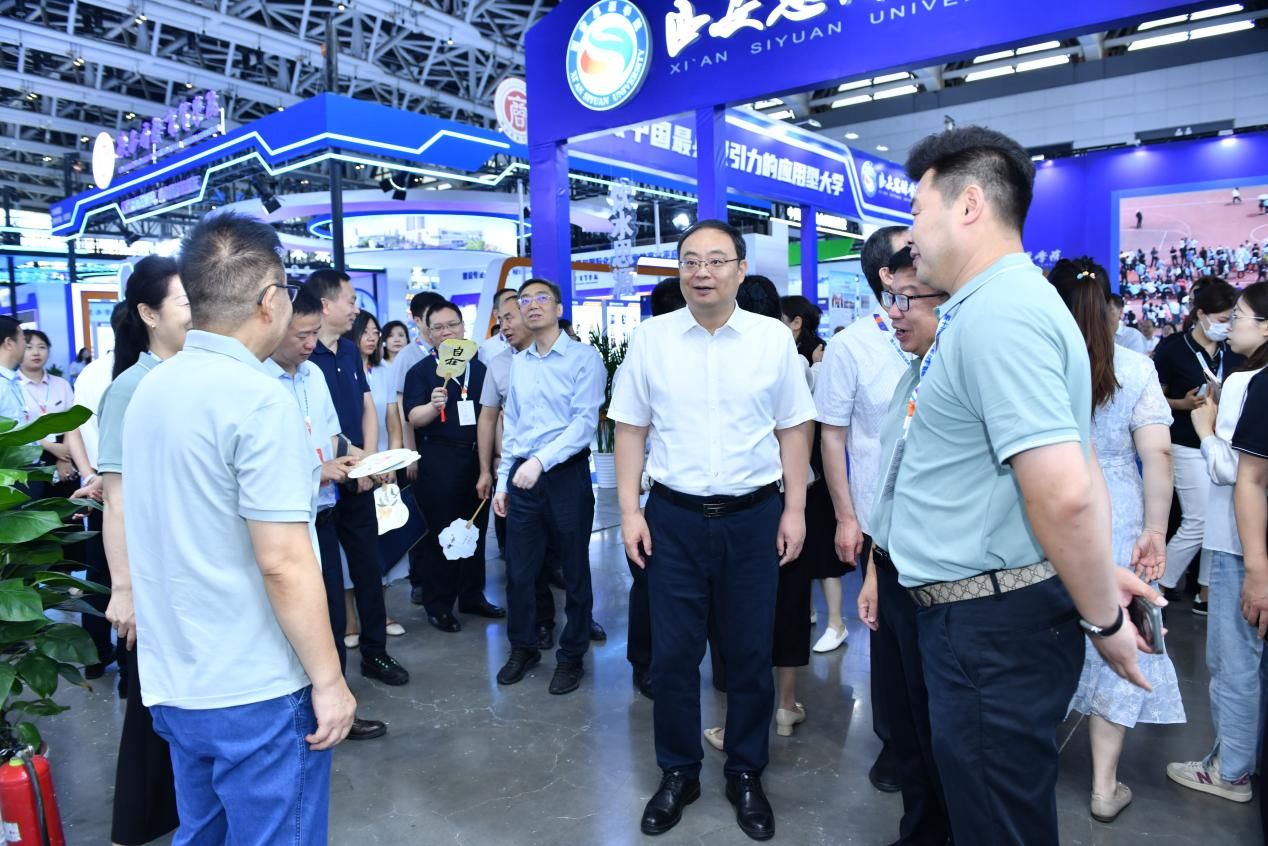 省教育厅厅长王树声及相关处室领导来我校展位指导工作,详细了解我校近年来在教育教学改革、人才培养体系构建等方面的创新实践,对学校近年来在学科建设、产教融合及育人质量提升等领域取得的显著成果给予高度评价。