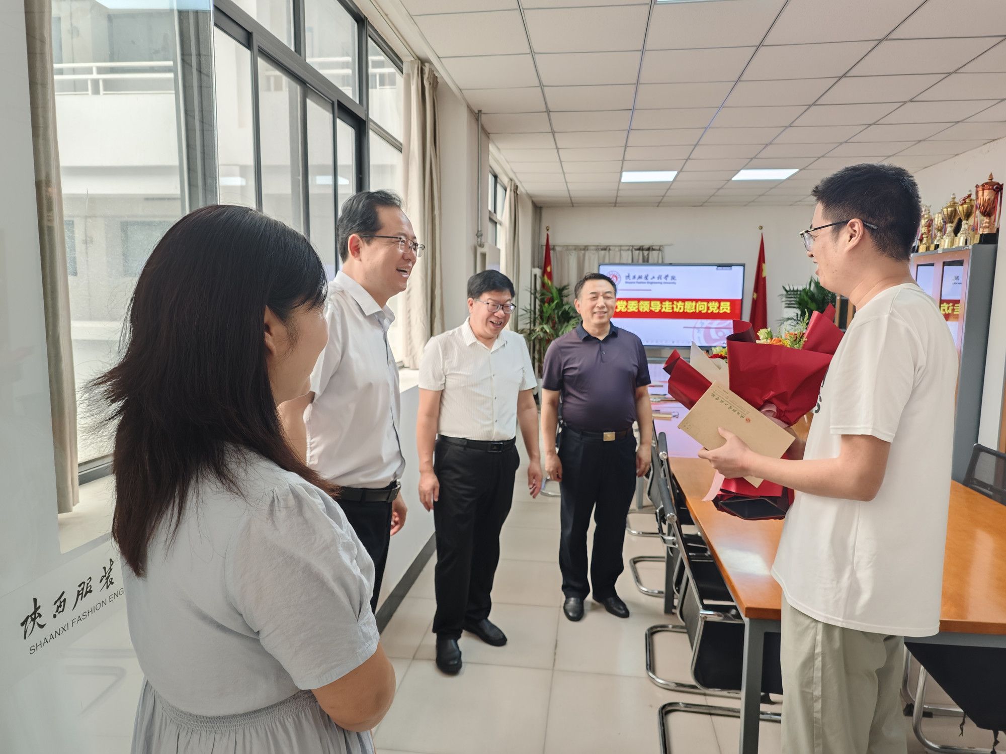 陕服新闻网讯(党委组织部)今年是中国共产党成立104周年,为弘扬党的光荣传统和优良作风,表达党组织对老党员的关心与厚爱。7月1日上午,校党委书记王岗、副书记刘继兵走访慰问了我校老党员、经济困难党员代表,为他们送去党组织的关怀和温暖,感谢他们为党的教育事业和学校建设发展作出的贡献,并向他们致以节日的问候和诚挚的祝福。