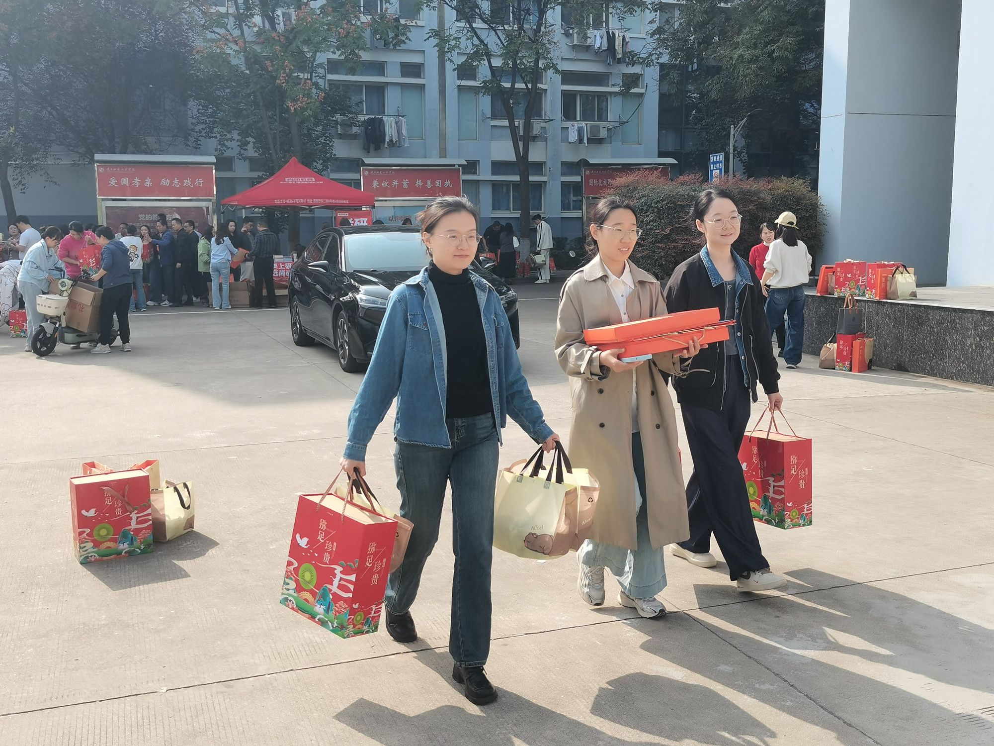 校工会和各分工会工作人员分工协作、密切配合,全力保障发放工作顺利进行,确保每一份慰问品及时、准确发放到广大教职工手中,现场教职工们喜笑颜开,秋日的校园更添幸福的暖意和亮色。