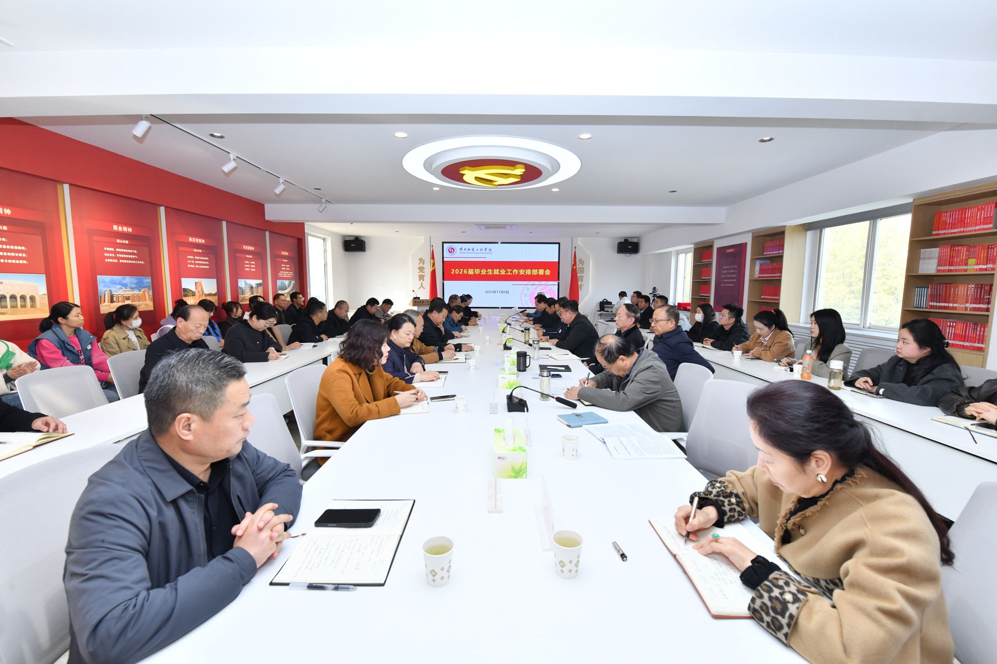 学校各相关部门,各学院主要负责人、分管领导、学工办主任和2025届、2026届毕业班辅导员参加会议。