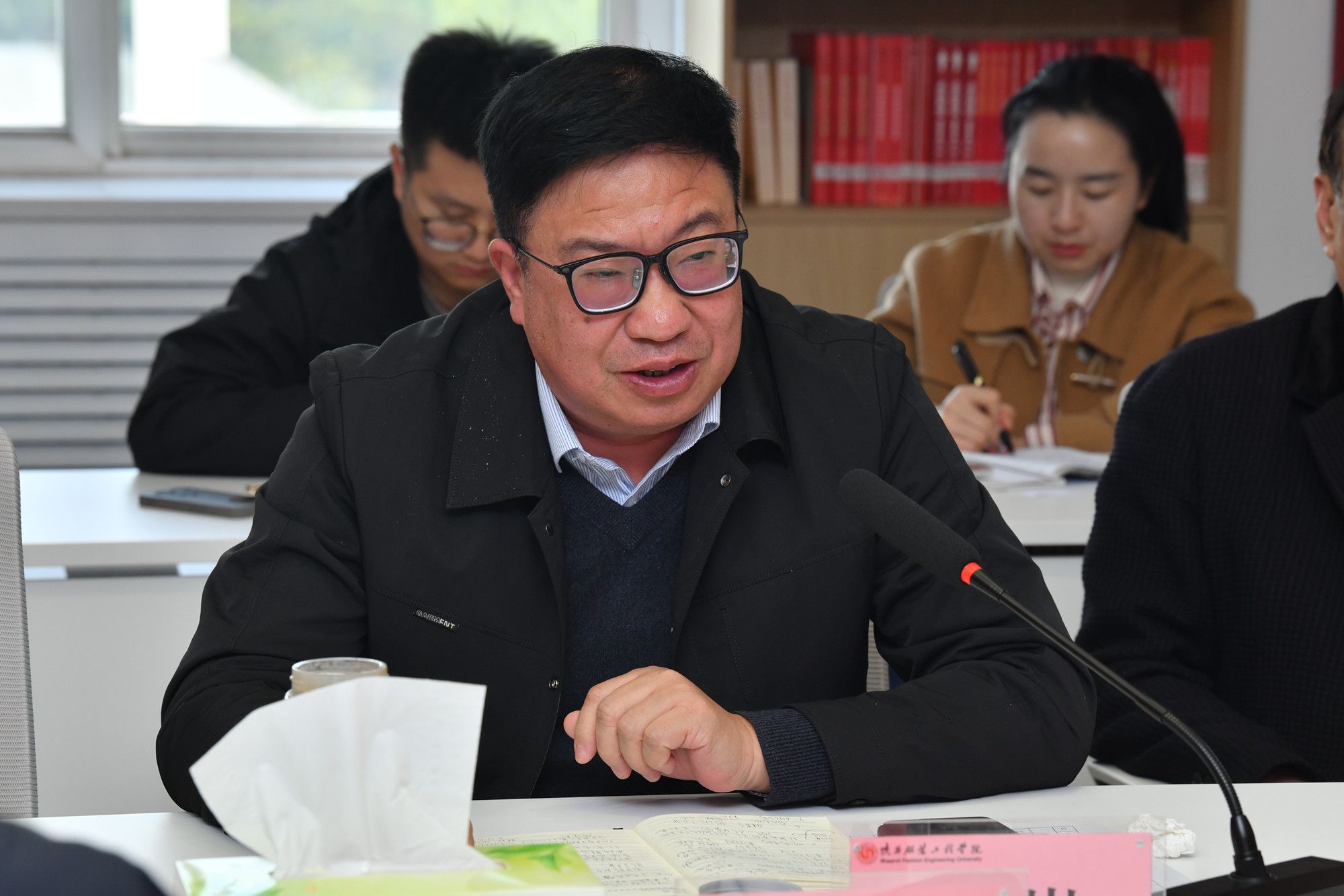经济管理学院党委书记、执行院长韩燕雄,信息工程学院党委书记、院长李水泉,艺术设计学院辅导员毛清华和健康学院辅导员张涵作了交流分享。校招生办主任薛丽萍以“优化招生促就业,以就业强招生”为题作了专题发言。