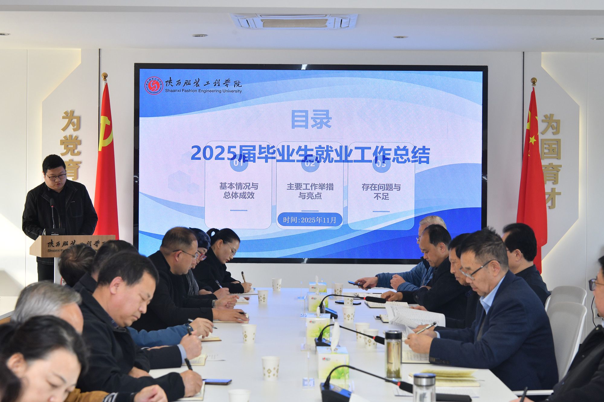 陕服新闻网讯(就业办)为深入贯彻党中央、国务院及省委、省政府关于促进高校毕业生就业的决策部署,系统总结我校2025届毕业生就业工作,安排部署2026届毕业生就业任务,11月4日,学校召开2025届就业工作总结暨2026届毕业生就业工作安排部署会。校长姜寿山、党委书记王岗及校领导黄新民、潘庆才、刘运、罗文谦、翟岁兵等出席。会议由党委副书记刘继兵主持。