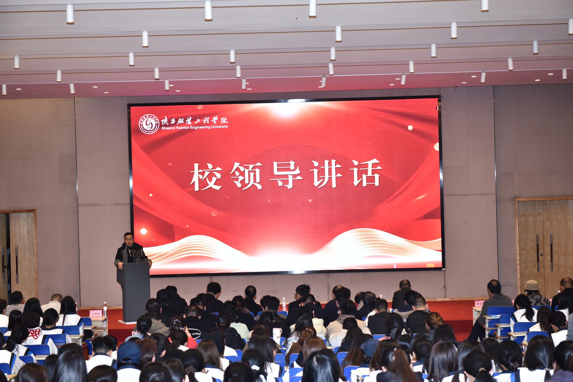 陕服新闻网讯(张维峰)11月26日,陕西服装工程学院“凝聚榜样力量 培育时代新人”2024-2025学年思想政治教育工作先进集体与优秀学生表彰大会在E1-4报告厅举行。校长姜寿山、党委书记王岗,及校领导黄新民、潘庆才、唐明晰、刘运、刘继兵、罗文谦、李钊等出席大会。各学院党政负责人、各职能部门负责同志、学工办主任、全体辅导员及学生代表参加,大会由学工部副部长董良超主持。