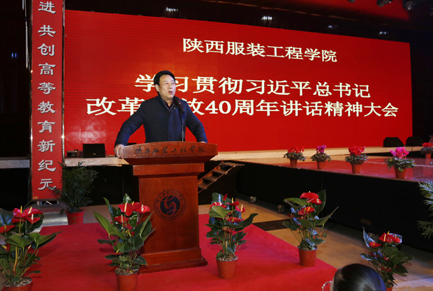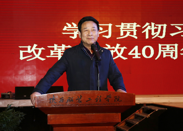 在其他大会上,校领导李宗领、艺术设计学院主持工作的副院长时晓楠、教师代表、经济管理学院办公室主任陈力军也分别讲话,畅谈改革开放四十年取得的丰功伟绩,回顾陕西服装工程学院25年来顺应改革开放大潮创立发展的历程。